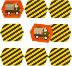 Različne vozniške ilustracije na šesterokotnih kartah pomagajo otrokom izboljšati spomin ter podpirajo kognitivne sposobnosti ohranjanjem igrivosti.