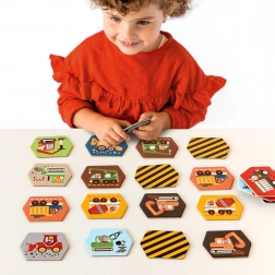 Iščete zabavno in izobraževalno aktivnost za vaše otroke? Pexeso gradbeni stroji je odlična izbira! Ta igra vsebuje pexeso karte s tematiko gradbenih strojev, ki otroke ne le zabavajo, temveč tudi pomagajo razvijati njihove kognitivne sposobnosti. Robustna konstrukcija je idealna za majhne roke, celoten set pa je prijazen do okolja, saj je izdelan iz recikliranih materialov in tiskan z zelenjavnimi črnili.