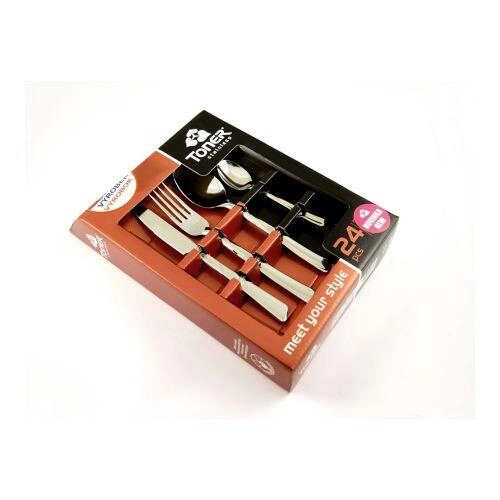 - 6× jušna žlica, 6× vilica, 6× nož, 6× kavna žlička