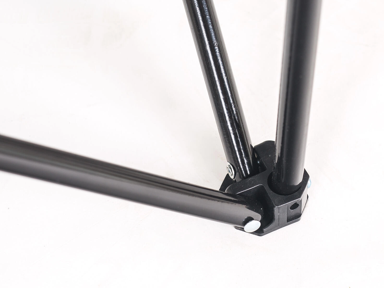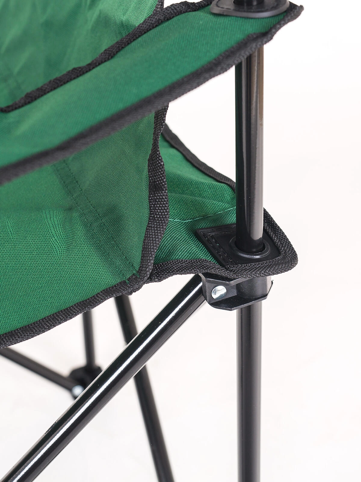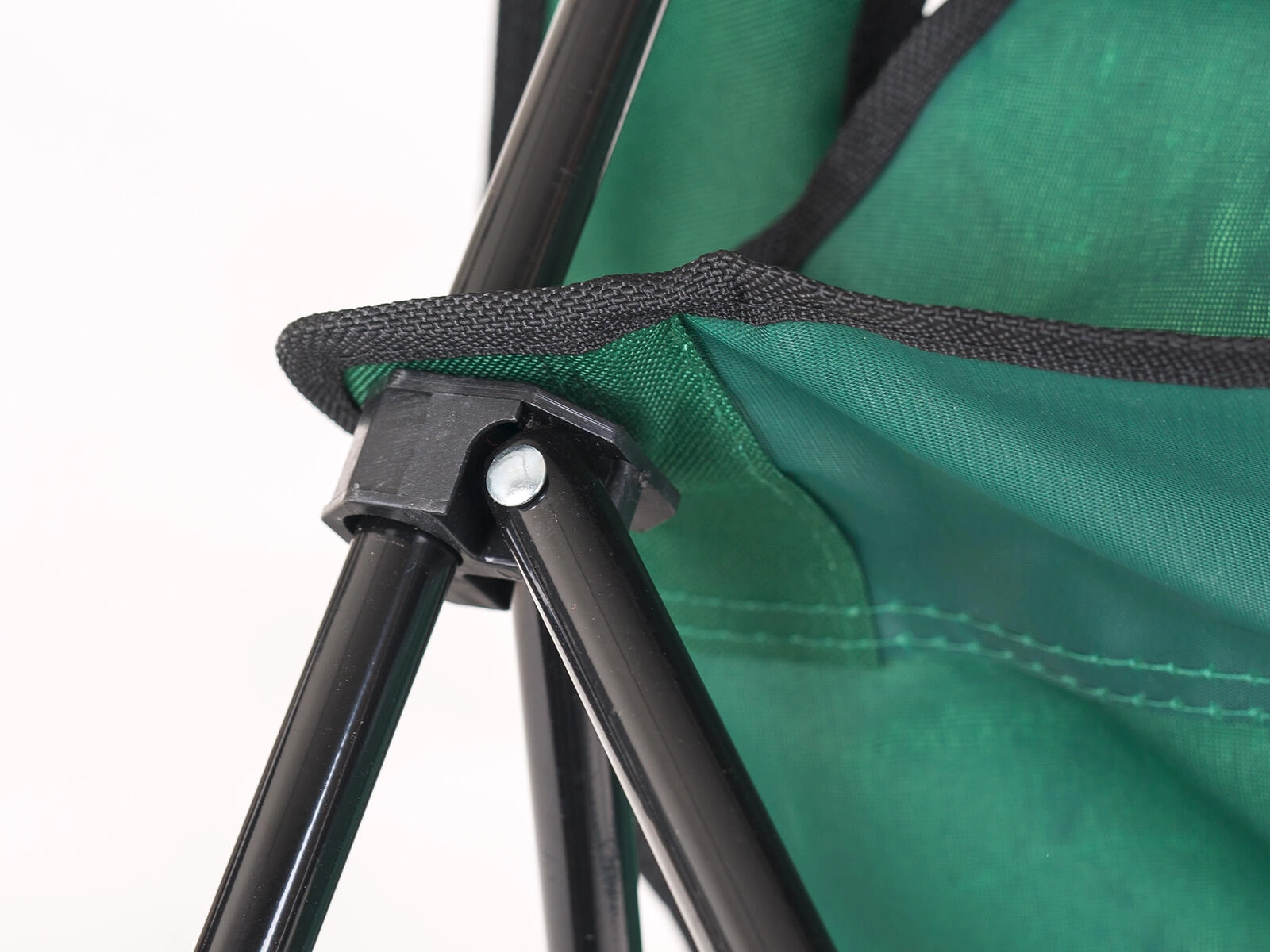 Črn kovinski okvir s križno ojačitvijo nudi zanesljivo stabilnost in nosilnost do 100 kg za varno sedenje na terenu.