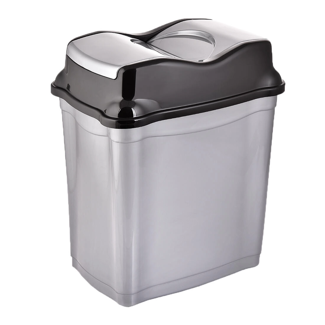 Izviren pokrov v obliki vala je razdeljen na sredini, zato lahko priročno odložite tudi večje odpadke brez potrebe po dvigu celotnega pokrova. Gladka površina se preprosto čisti, trpežna plastika pa zagotavlja dolgo življenjsko dobo pri vsakodnevni uporabi.
