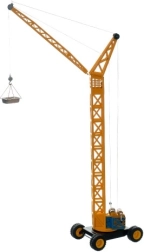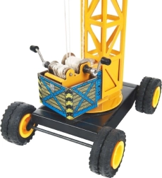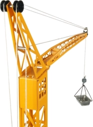 Dvigalo je opremljeno z vrtljivo stolpom, premičnim ročajem in sistemom za dviganje bremen. Posebej vas bo navdušil ročni pogon z ročajem, ki otrokom omogoča treniranje motoričnih sposobnosti in koordinacije gibov. Dolga ročaja je 25 cm, celotno dvigalo pa meri 50 cm v višino.