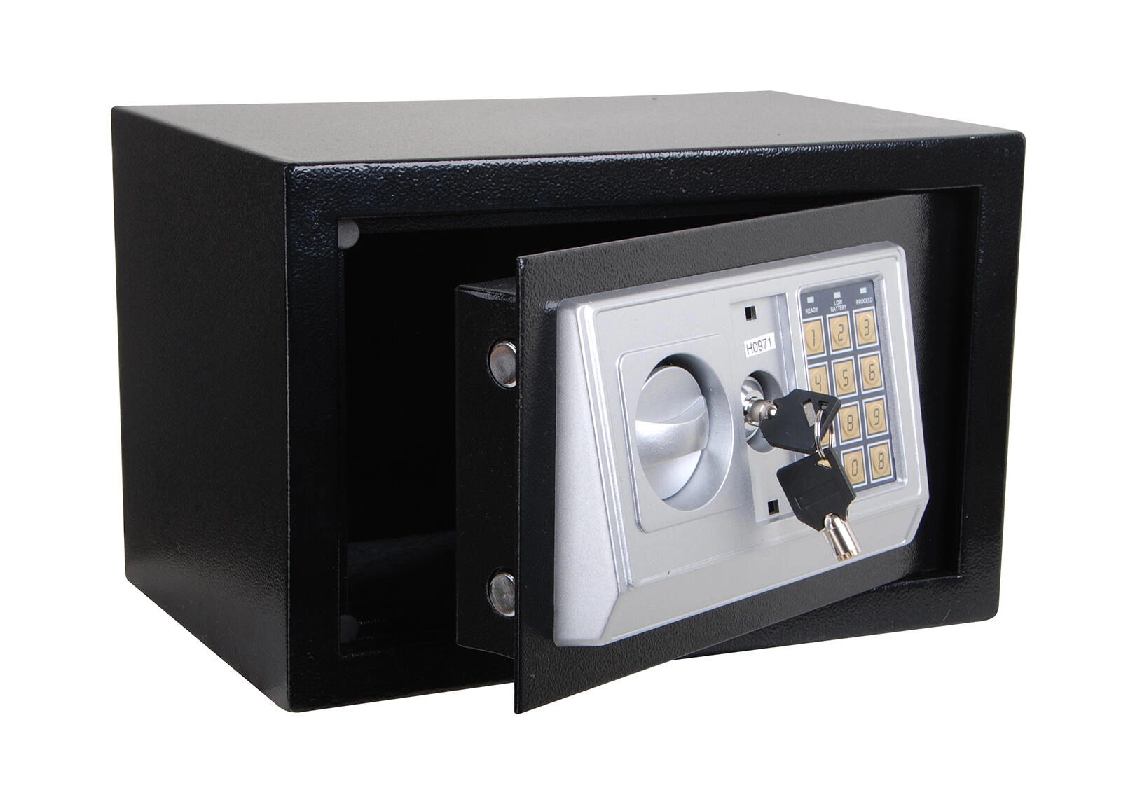 Kompakten digitalni trezor ponuja varno shranjevanje dragocenosti doma in v pisarni. Opremljen je s PIN kodo za hiter dostop in 2 zasilnima ključema za odpiranje v primeru izpraznjenih baterij. Zahvaljujoč možnosti pritrditve na tla ali steno ter priloženi opremi je namestitev enostavna, trezor pa je pripravljen za takojšnjo uporabo.