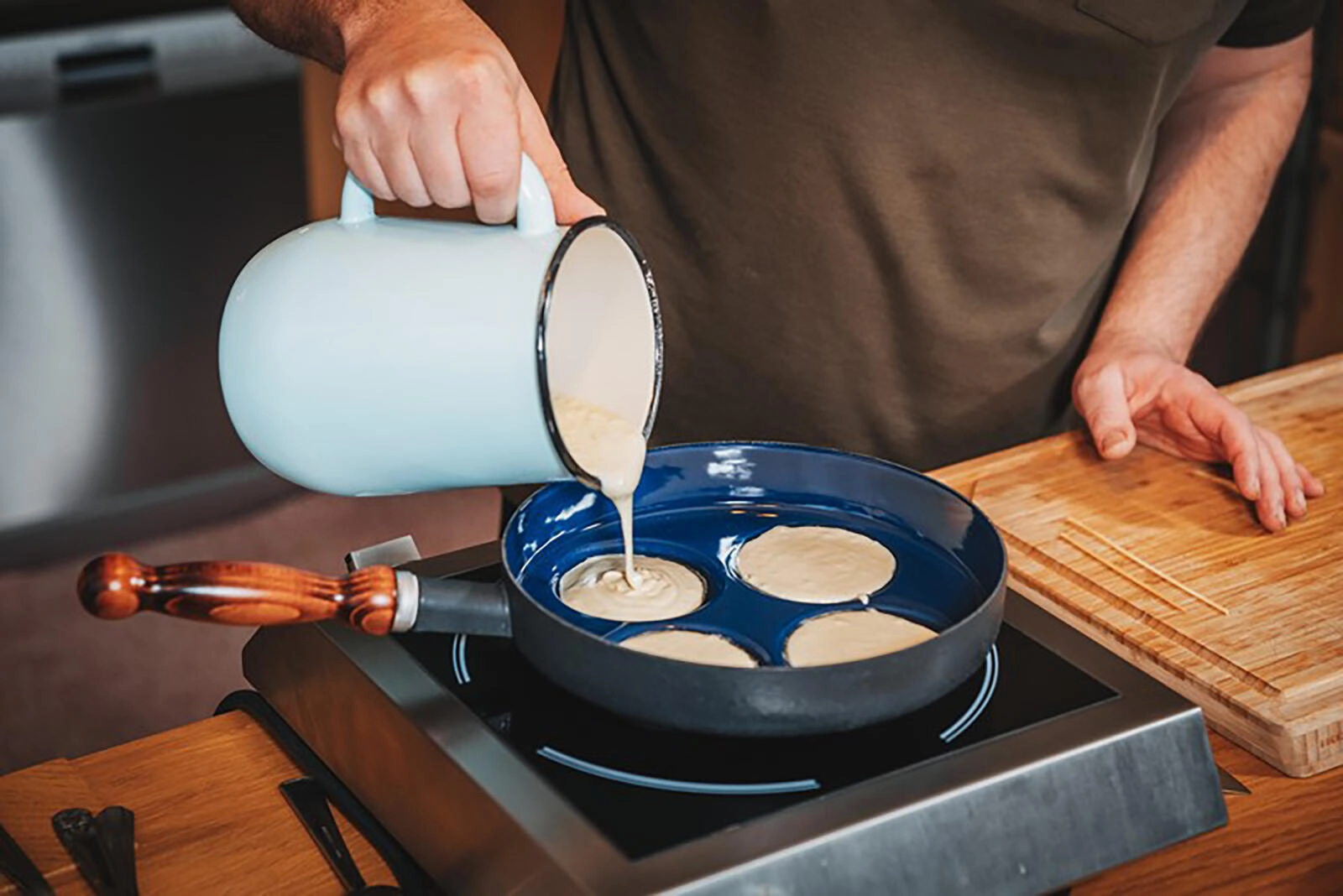 - Univerzalna uporaba: palačinke, jajca, krompirjeve polpete in majhne ploščice v enotni obliki.