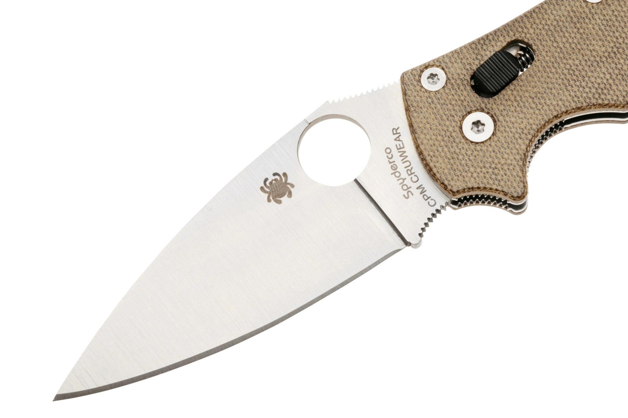 Spyderco Manix 2 Brown je uravnotežen žepni nož za zahtevne uporabnike. Rezilo tipa Leaf Shape z gladkim robom in ploskim brusom iz jekla CPM Cru-Wear nudi odlično kombinacijo obstojnosti ostrine, žilavosti in odpornosti proti obrabi, površinska obdelava Satin zagotavlja eleganten videz in gladek rez.