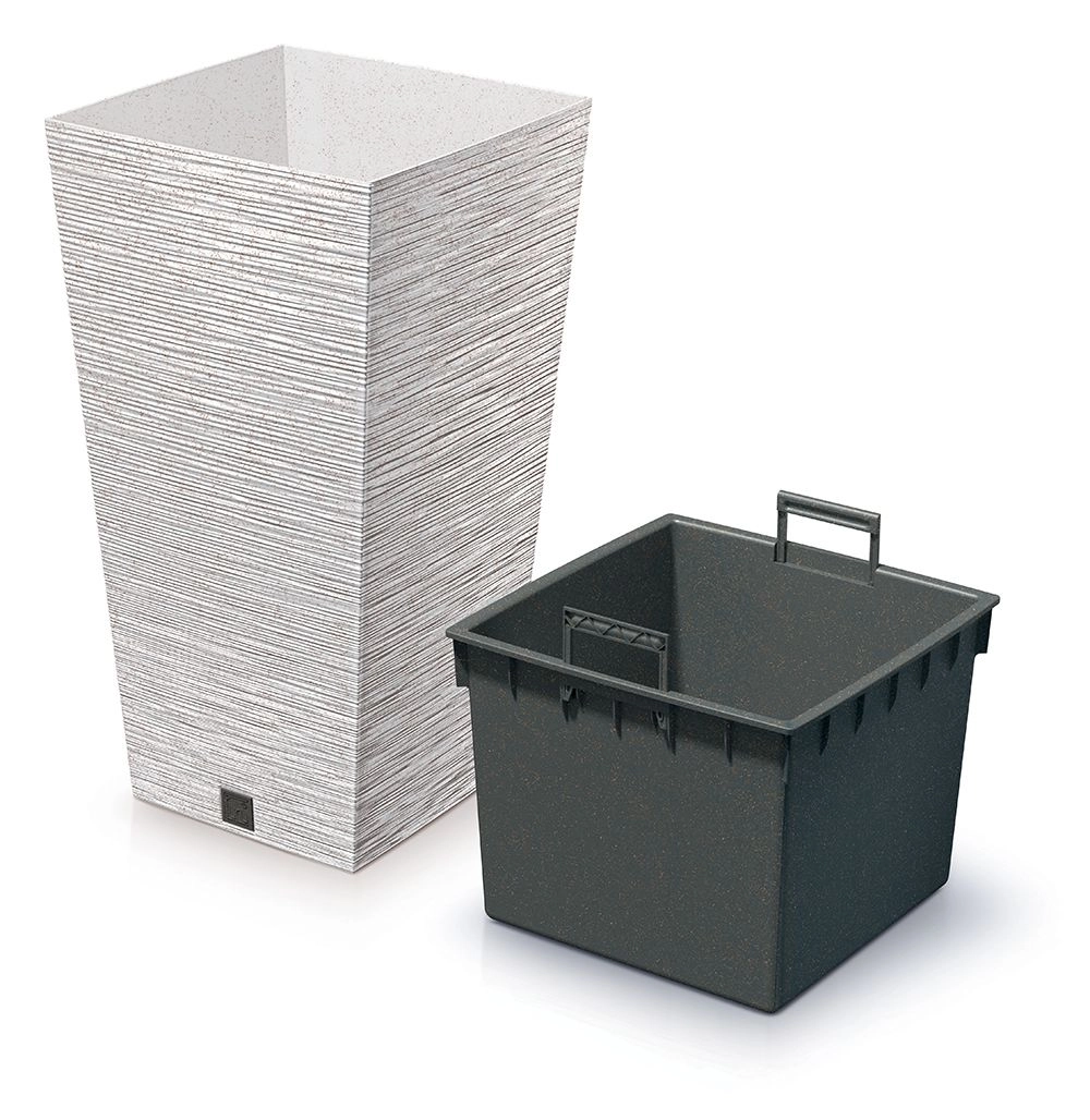 Odkrijte spoj dizajna in funkcionalnosti. Lončnik Furu Square Eco Wood izstopa z brezčasno oglato obliko in nežno teksturo imitacije lesa, ki poudari zelenje in prostoru doda moderen pridih. Notranji vložek olajša presajanje, zalivanje in ravnanje z rastlinami.