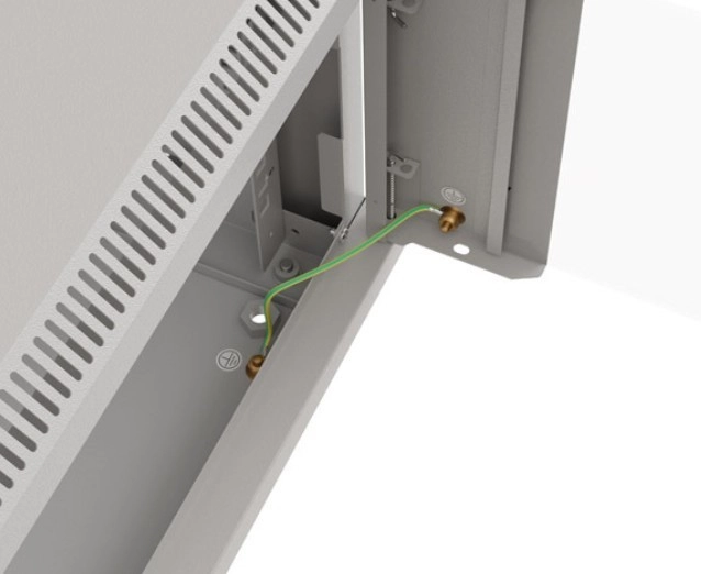 Zaradi pametno zasnovanega vodenja kablov in prezračevanja je omarica pripravljena za vsakodnevno rabo: zgornji in spodnji panel imata preboje 315×55 mm (z možnostjo zapore) in prezračevalne odprtine, na voljo pa je tudi položaj za ventilator 120×120 mm. Montaža je hitra in intuitivna – v paketu prejmete štiri oštevilčene letve, vijake M6 in ozemljitveni vodnik. Pritrditev na steno je možna neposredno skozi okvir ali s pomočjo montažne letve.
