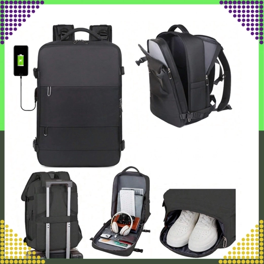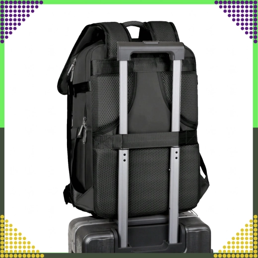 Ne manjka podložen predal za prenosnik do 14" (tablica do 13"), ločen vodoodporen žep za mokre stvari in spodnji predel za obutev z prezračevalnimi odprtinami. Na sprednji strani so dodatni žepi za drobnarije. Nahrbtnik lahko utrdite ali razširite s pomočjo stranskih kompresijskih trakov ter ga namestite na ročaj kovčka za udobno potovanje.