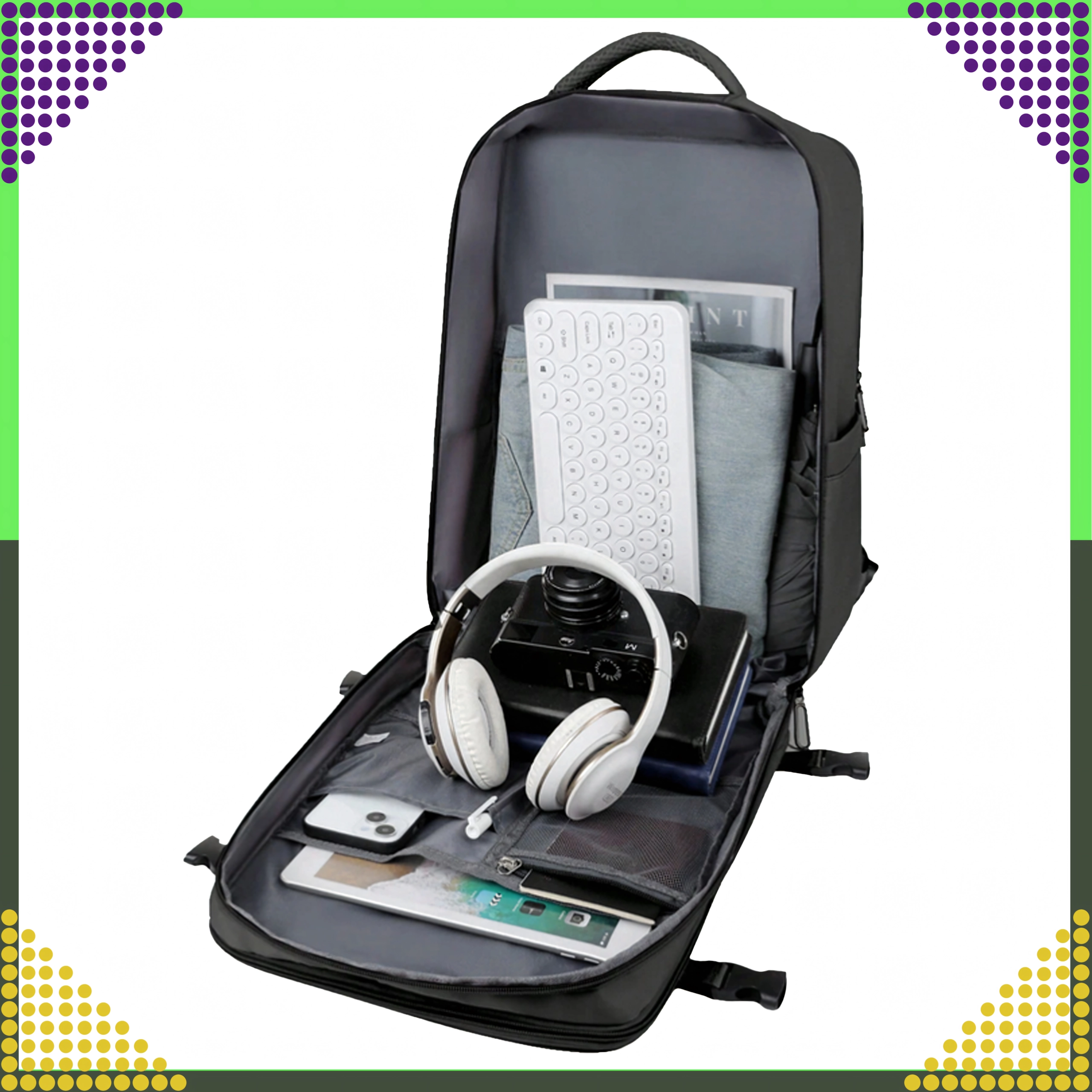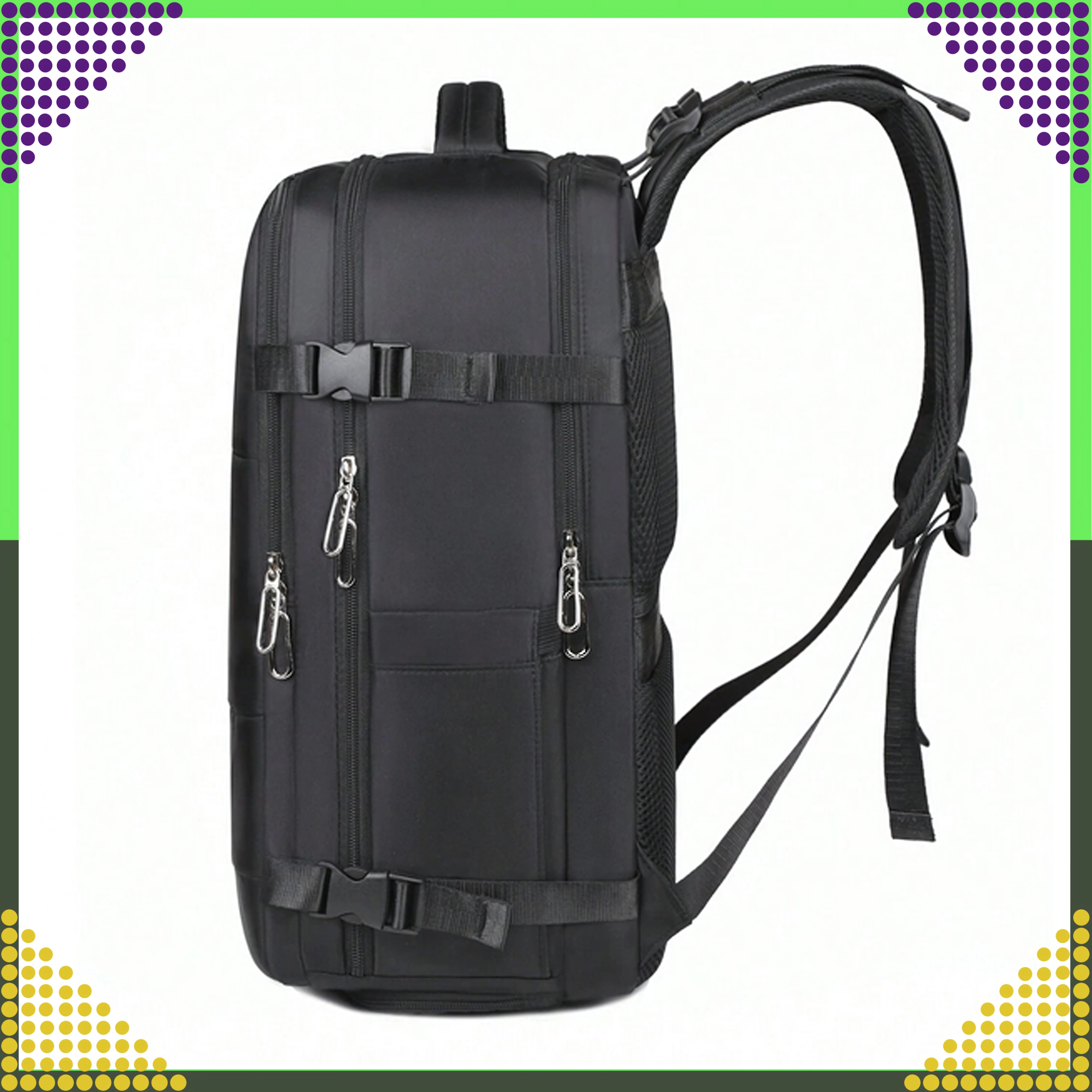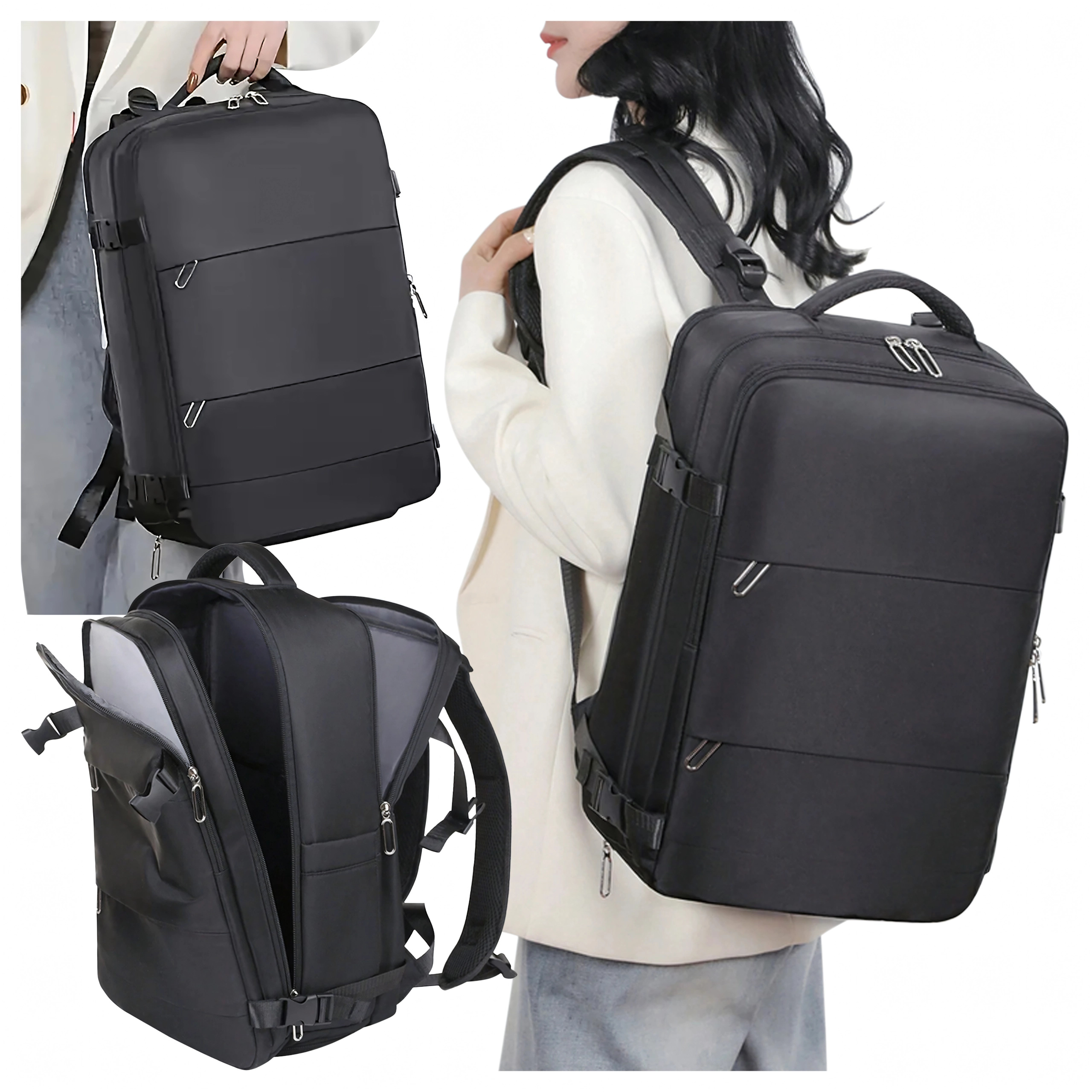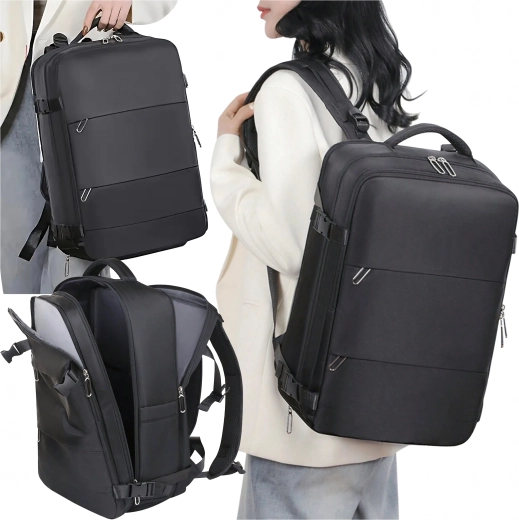 Ta vsestranski potovalni nahrbtnik združuje funkcionalnost ročne prtljage in udobje klasičnega nahrbtnika. Vodoodporen najlon/oxford z vzdržljivimi zadrgami ščiti vaše stvari pred vlago in umazanijo, medtem ko strukturirana oblika in več predelkov poskrbita za pregledno urejenost. Glavni predal se odpre do 180° kot kovček za enostavno pakiranje.