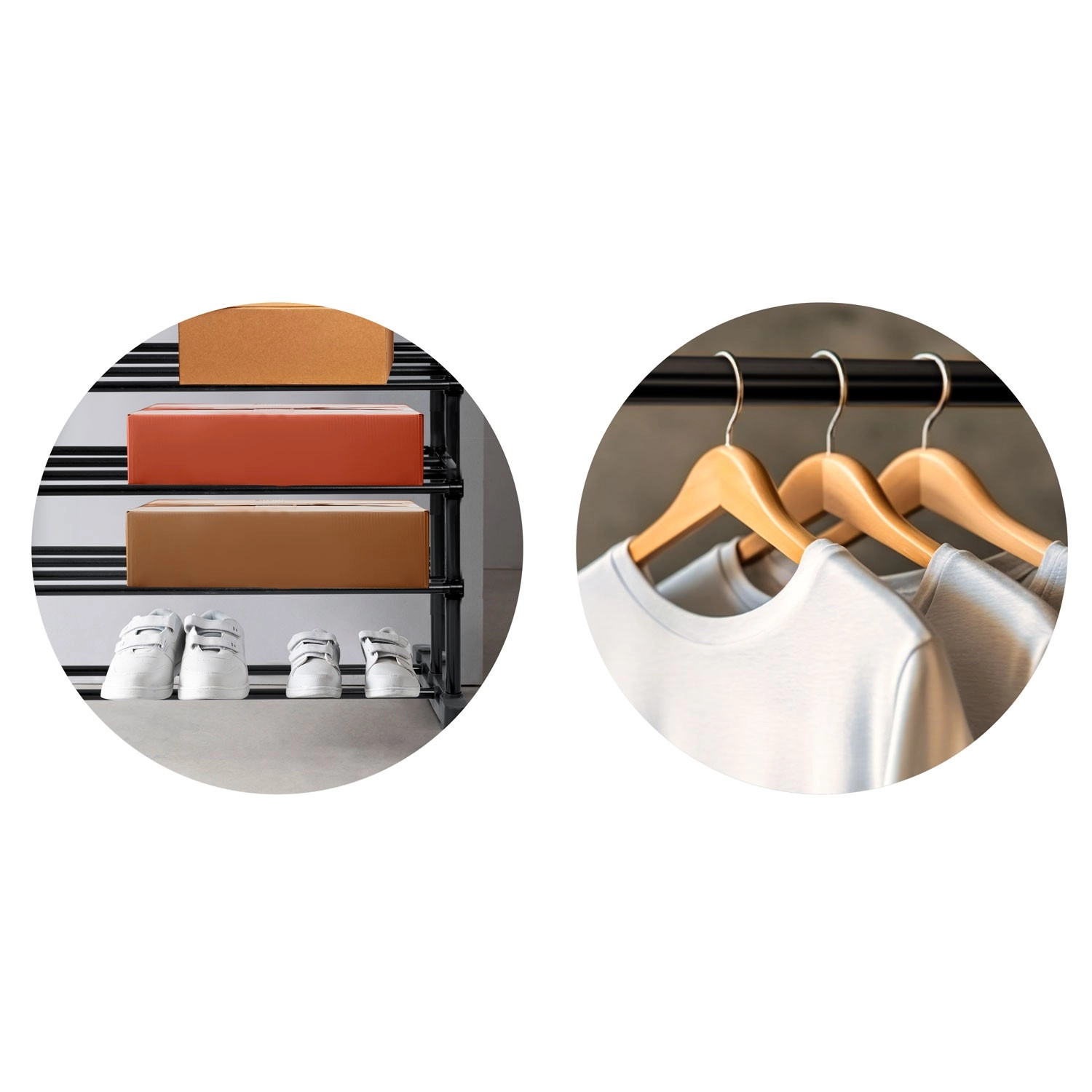 Večnivojske police nudijo prostor za obutev, shranjevalne škatle in dodatke, da je vse pri roki in pregledno pospravljeno.