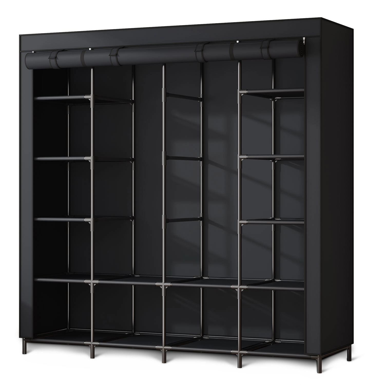 Sprednji roll-up paneli z zadrgami ščitijo oblačila pred prahom in omogočajo hiter dostop do vseh delov omare.