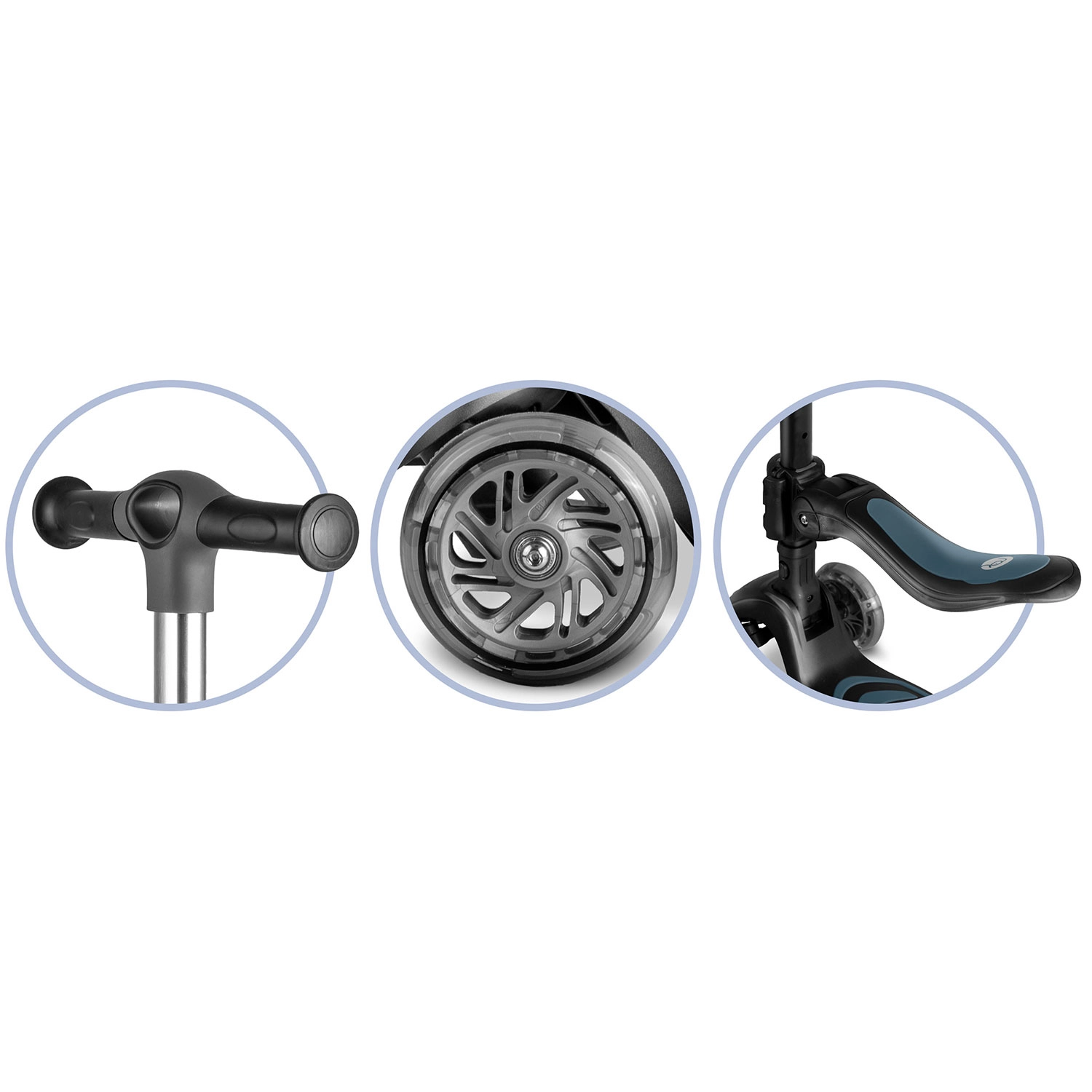 Tri-stopenjska nastavitev višine krmila ter nastavljiv, odstranljiv sedež omogočata prilagoditev skiroja trenutni višini in spretnostim otroka.