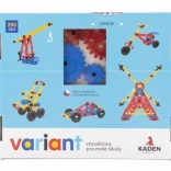 Odkrijte klasiko, ki ne zastara. Gradbeni komplet VARIANT združuje preprost princip vijaka in matice z bogatimi možnostmi sestavljanja. Otroci lahko ustvarjajo najrazličnejše modele, eksperimentirajo s prenosi z uporabo zobnikov in izboljšujejo koordinacijo oko–roka. Zahvaljujoč trpežnim plastičnim delom je komplet obstojen in primeren za večkratno uporabo vrsto let.