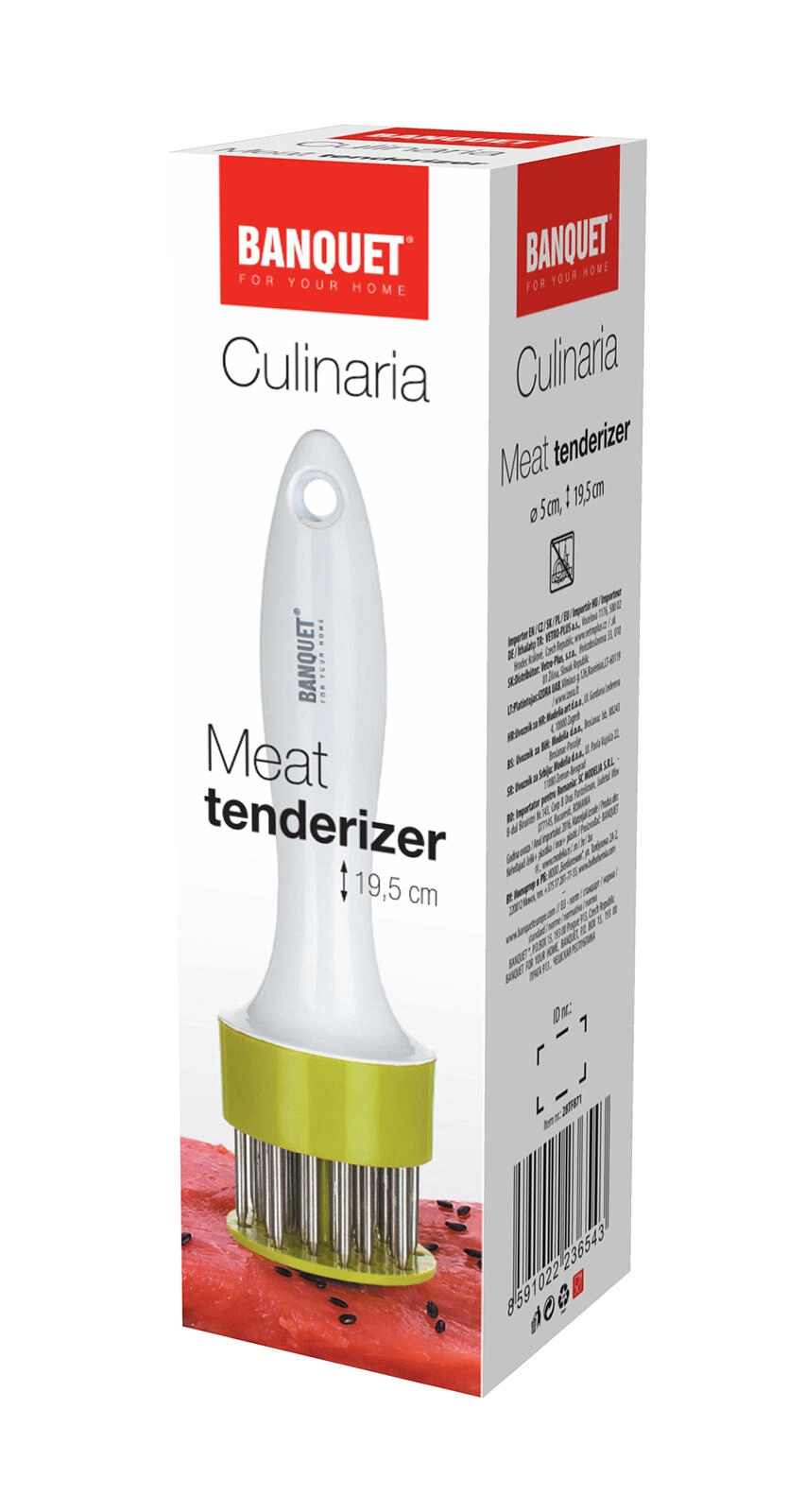 Mehčalnik mesa Culinaria je idealen pomočnik za vsakodnevno kuhanje in pripravo slavnostnih jedi. Gosto polje nerjavnih igel prezrači in zareže mišična vlakna, kar zagotovi enakomernejšo zapečenost in izrazito boljše vpijanje začimb ter marinad. Cenil ga bo vsak, ki želi imeti meso vedno mehko in sočno.