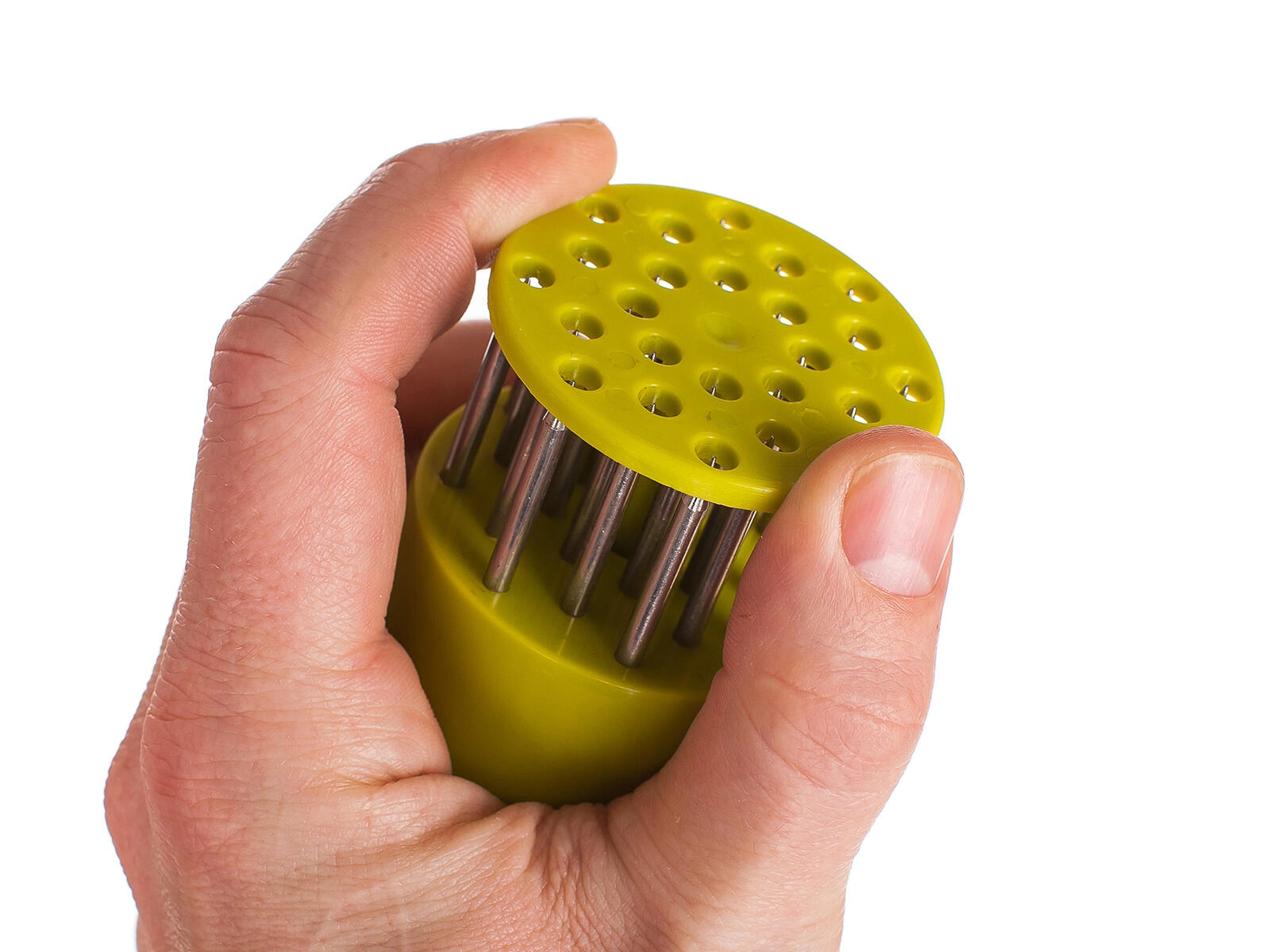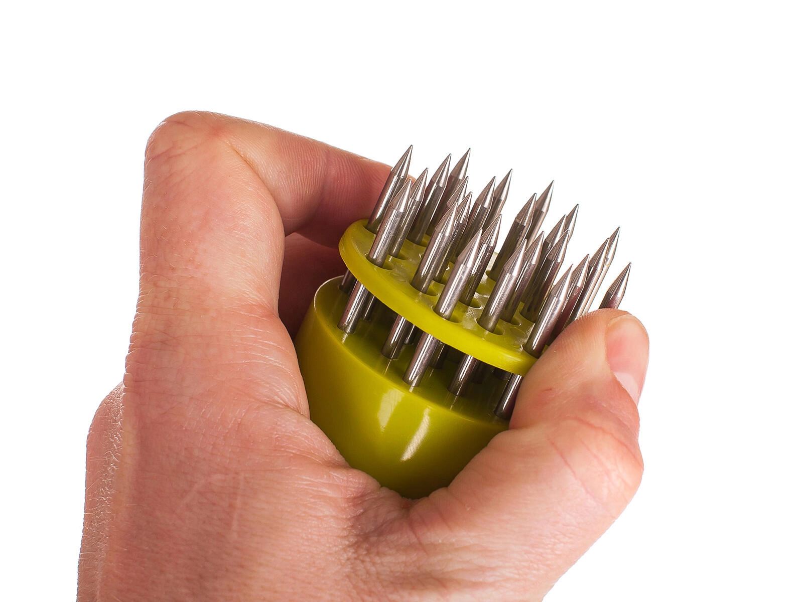 Gosto polje ostrih nerjavnih igel prerezuje vlakna, zagotavlja sočnost in enakomerno zapečenost mesa.