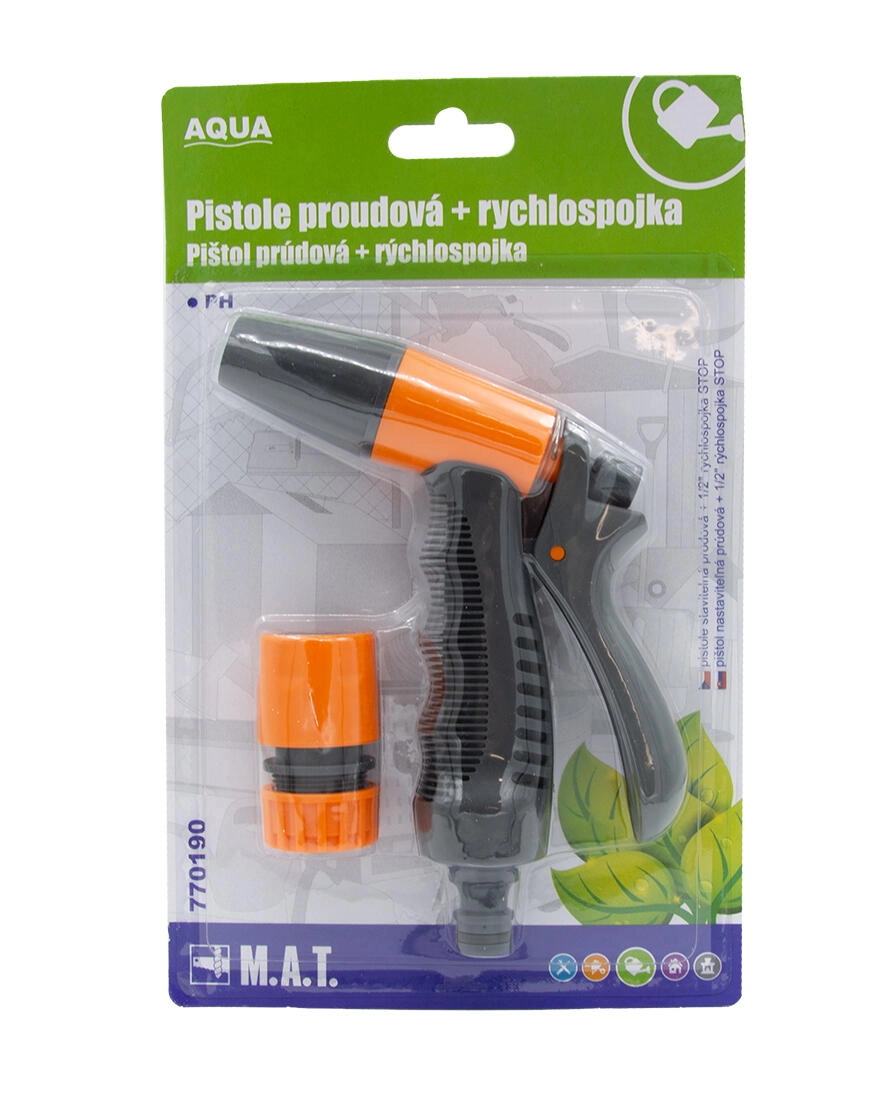 Zahvaljujoč odpornemu plastičnemu materialu je komplet lahek, enostaven za uporabo in odlično leži v roki. Standardni navoj 1/2" zagotavlja široko združljivost z običajnimi vrtnimi cevmi in dodatki.
