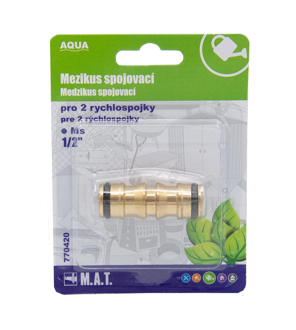 Praktičen povezovalni del za vrtne cevi, ki omogoča hitro povezavo dveh hitrih spojk 1/2. Izdelan iz odporne medenine za dolgo življenjsko dobo in zanesljivo uporabo na prostem.