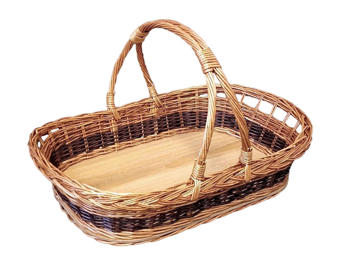 Eleganten in trpežen pleten pladenj z močnimi ročaji za udobno prenašanje. Zahvaljujoč meram 53 × 40 × 27 cm ponuja dovolj prostora za serviranje. Izdelan je iz kakovostne vrbove šibe v naravni barvi in premazan z lakom za daljšo življenjsko dobo. Ročna izdelava, čvrsta konstrukcija in preprosto serviranje za vsak dom, vikend ali počitniško hišo.