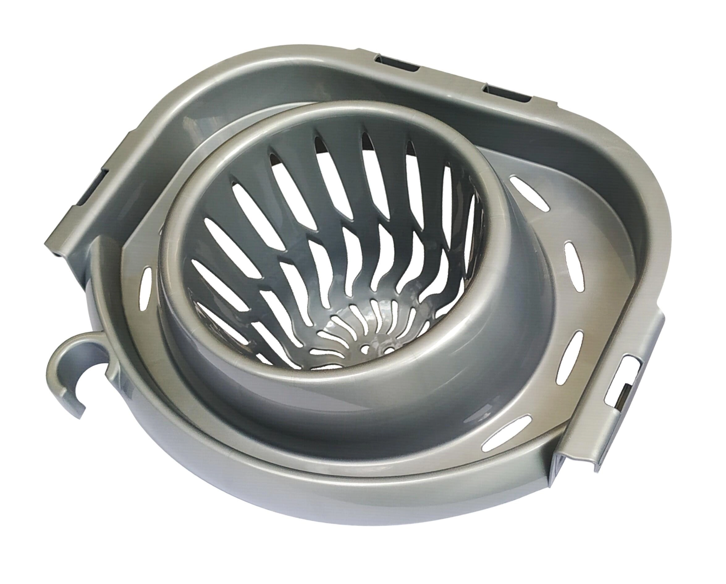 Univerzalno ovalno vedro z ožemalnikom olajša brisanje tal brez stika rok z umazano vodo. Zaradi ergonomične oblike, stabilnega dna in priročnega izliva je rokovanje enostavno in čisto. Srebrna izvedba se poda vsaki gospodinjstvu ali pisarni.