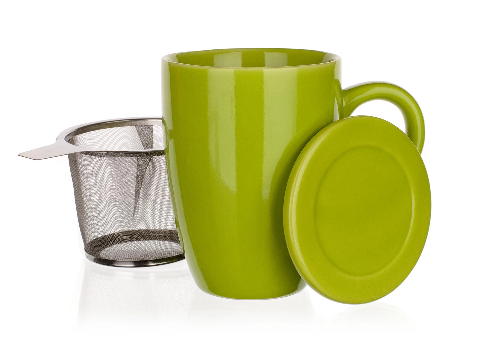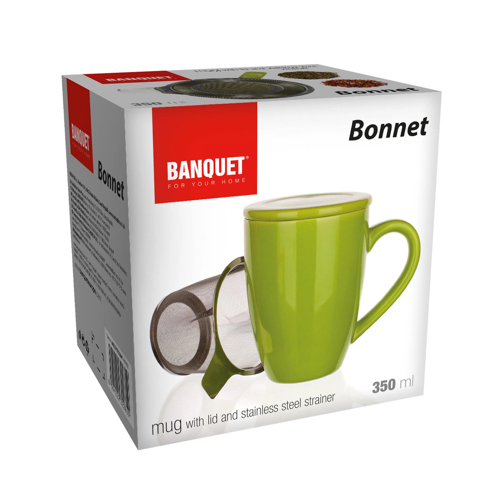 Uživajte v udobni pripravi razsutega čaja s skodelico BONNET. Kakovostna keramika z bleščečo zeleno glazuro prijetno sede v roko, pokrov pomaga ohraniti napitek dlje topel, po namakanju pa služi kot priročna odlagalna posodica za cedilo.