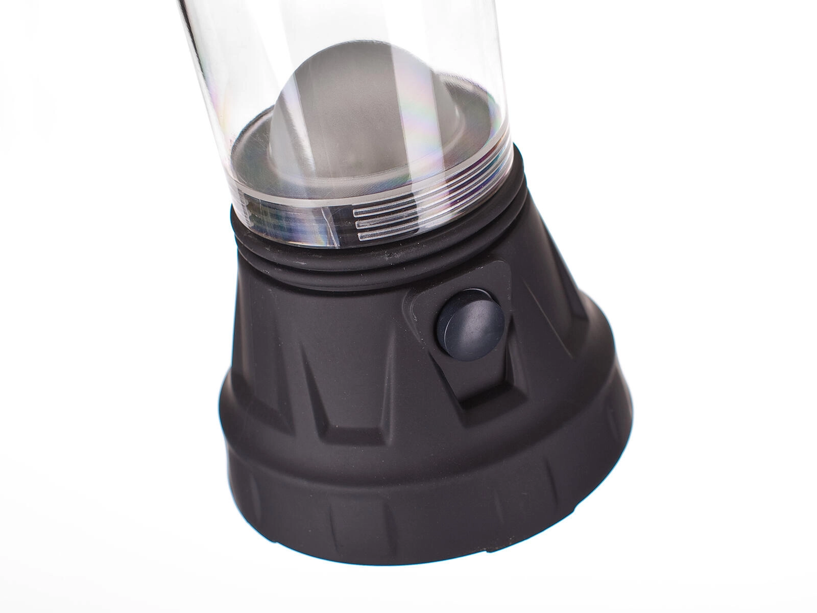 Prozoren valjasti difuzor in zgornji ročaj omogočata enakomerno osvetlitev prostora ter udobno obešanje v šotoru ali na veji.