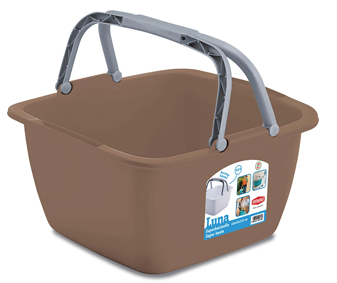Korito LUNA v praktični kvadratni obliki ponuja zadostno prostornino 18,5 litra, udobno prenašanje zahvaljujoč integriranim ročajem in enostavno vzdrževanje. Odporna plastika zagotavlja dolgo življenjsko dobo in nizko težo, zato je odlično za vsakodnevno uporabo v kuhinji, kopalnici in na vikendu.