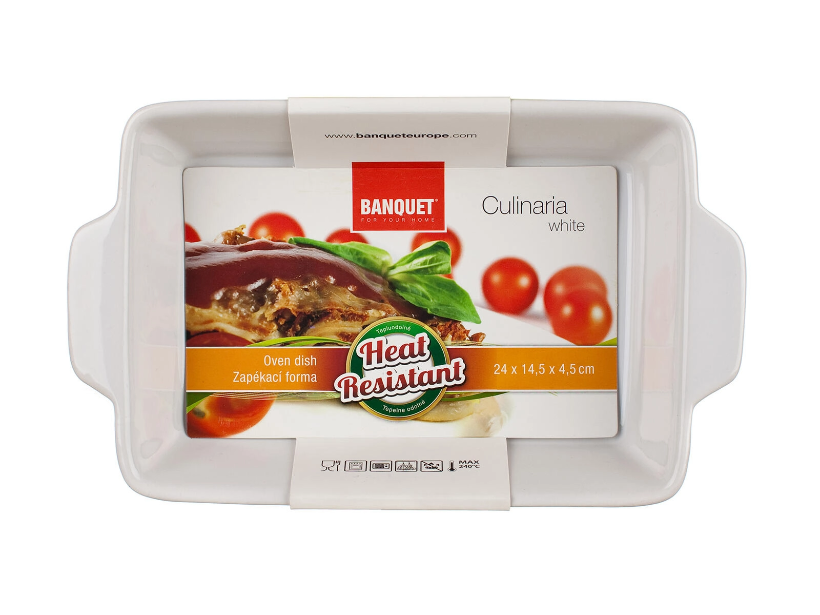 Pravokotni keramični pekač CULINARIA White je idealen za zapečene testenine, zelenjavo, meso in sladke deserte. Keramika odlično akumulira in enakomerno oddaja toploto, zato se jedi lepo in enakomerno spečejo. Eleganten valovit relief in bela glazura se podata v vsako kuhinjo ter na mizo za neposredno serviranje.