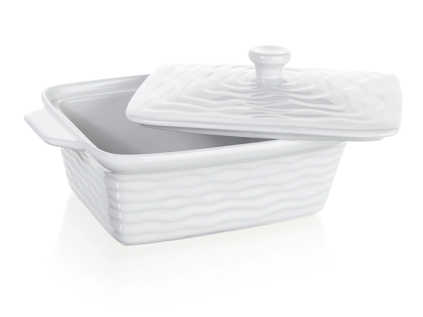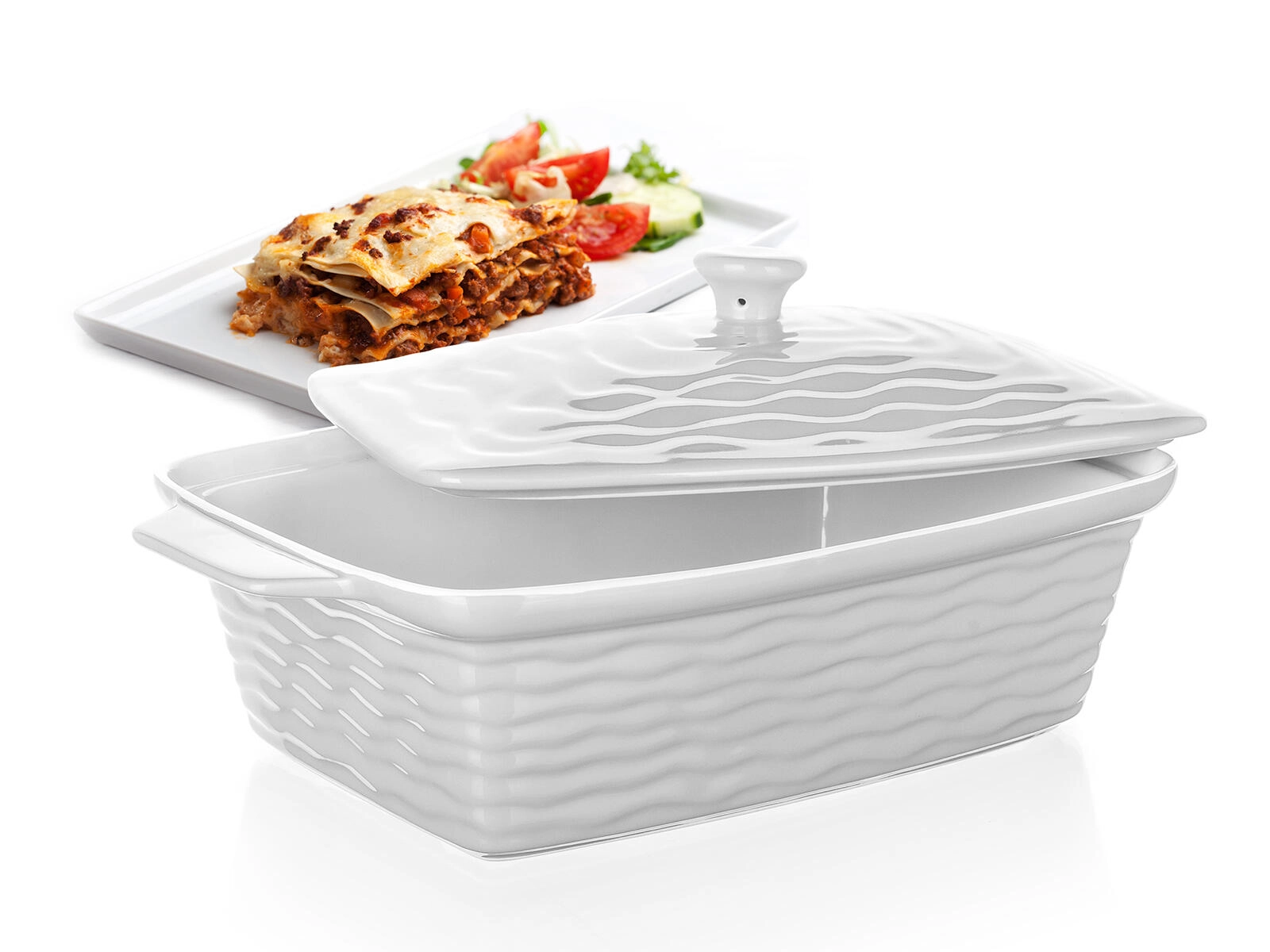 Keramika enakomerno absorbira in sprošča toploto, zato vedno dosežete popolno prepečene in sočne rezultate. Dekorativni valovit relief jo hkrati naredi za elegantno posodo za neposredno serviranje na mizo.