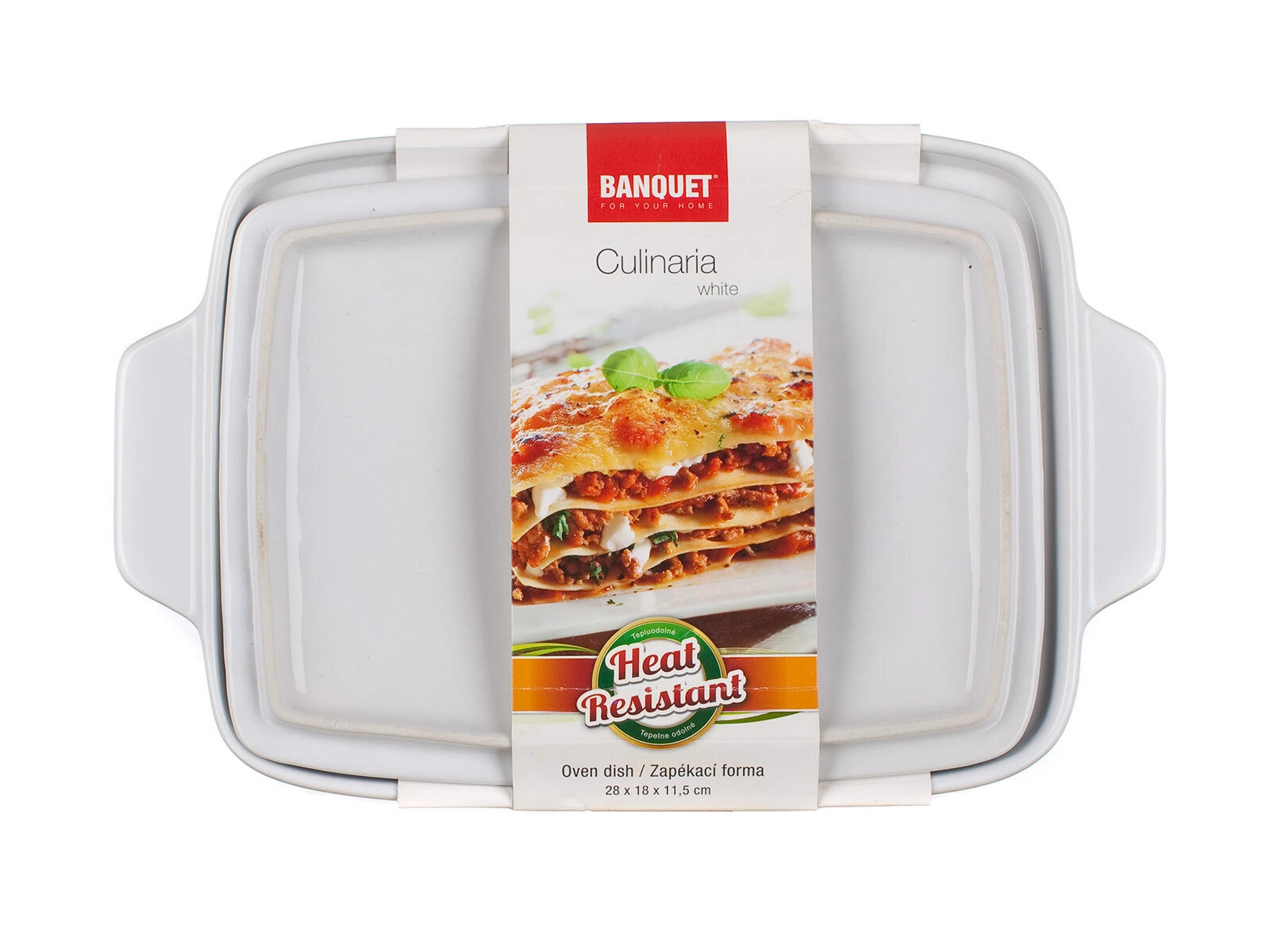 Pravokotni keramični pekač CULINARIA White dimenzij 28 × 18 cm je odlična izbira za lazanjo, zapečene testenine, zelenjavo in meso. Glazirana površina omogoča preprosto čiščenje, priročni ročaji pa zagotavljajo varno in udobno rokovanje.