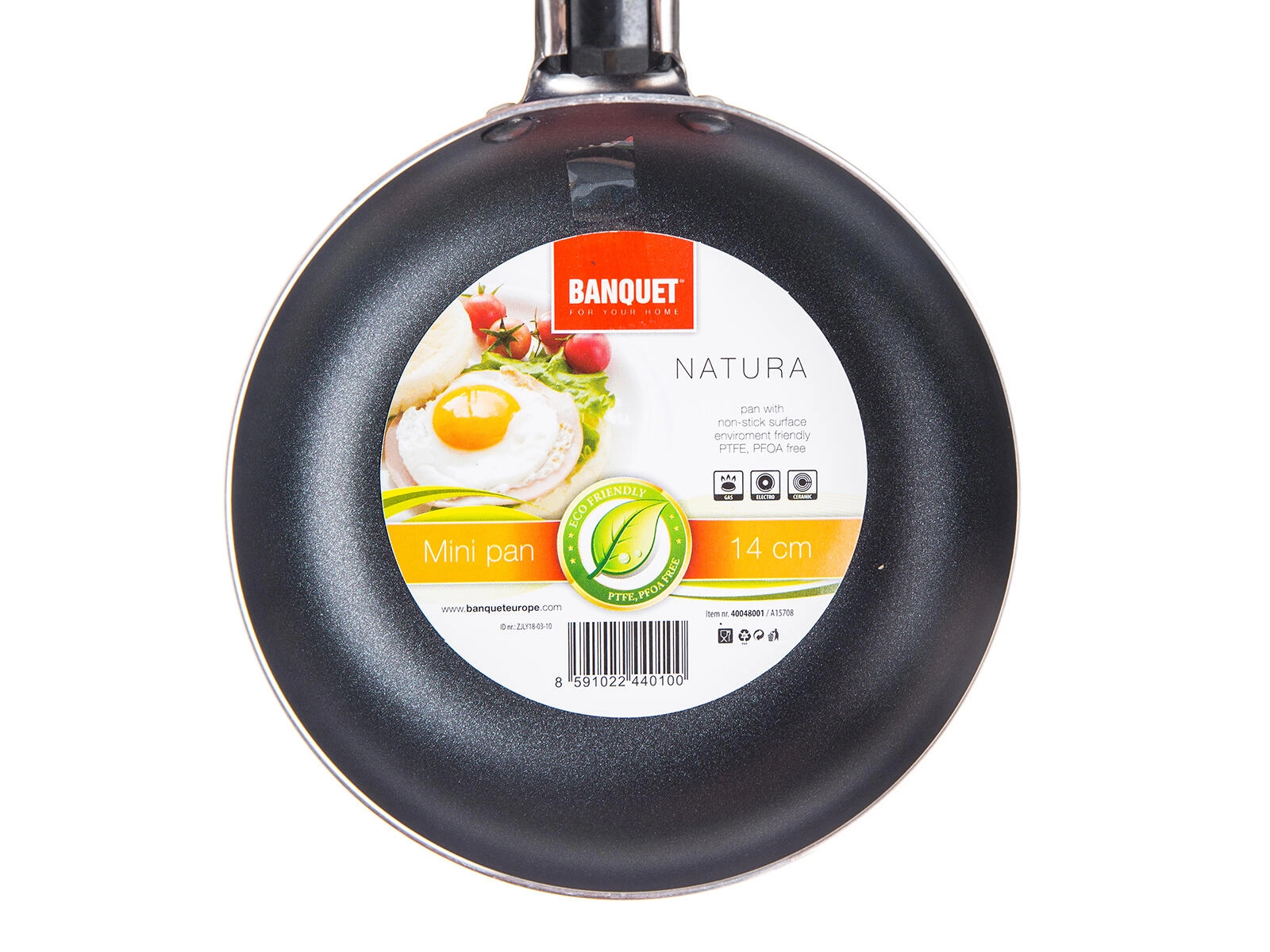 Mini ponev Natura 14 cm je idealna za manjše kuhinje, za hitre zajtrke in kuhanje za eno osebo. Nelepljiva površina z dvema plastema zagotavlja gladko pečenje z malo maščobe in preprosto čiščenje. Zaradi lahkega ohišja in prijetnega oprijema je rokovanje enostavno in varno.