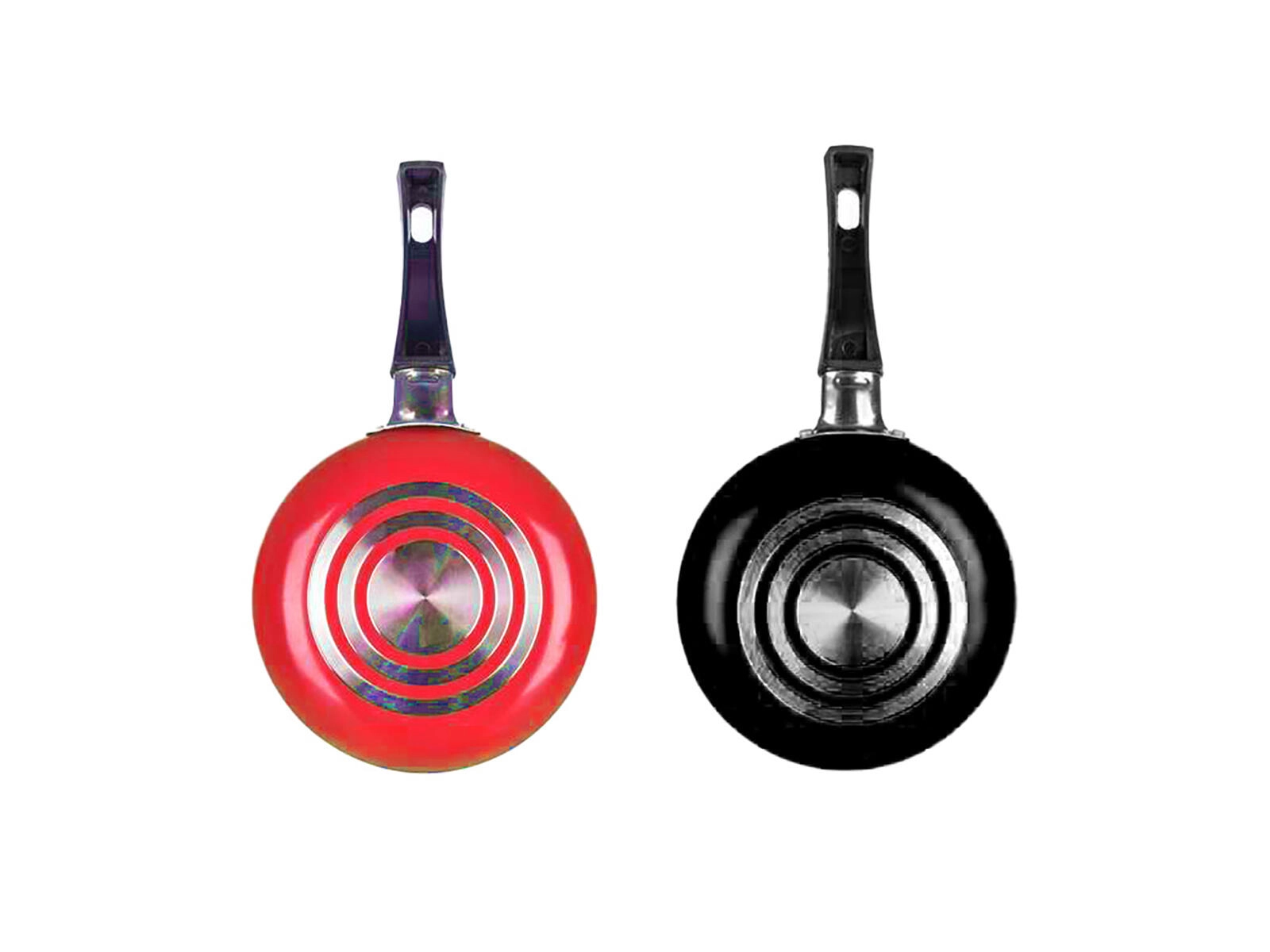 Zunanji del je v privlačnem miksu barv (modra, vijolična, rumena), zato se ponev stilsko poda v vsako kuhinjo. Bakelitni ročaj je toplotno odporen in udoben za držanje, medtem ko spiralno dno pripomore k enakomernemu segrevanju na plinu, elektriki in steklokeramiki. Indukcija ni podprta.