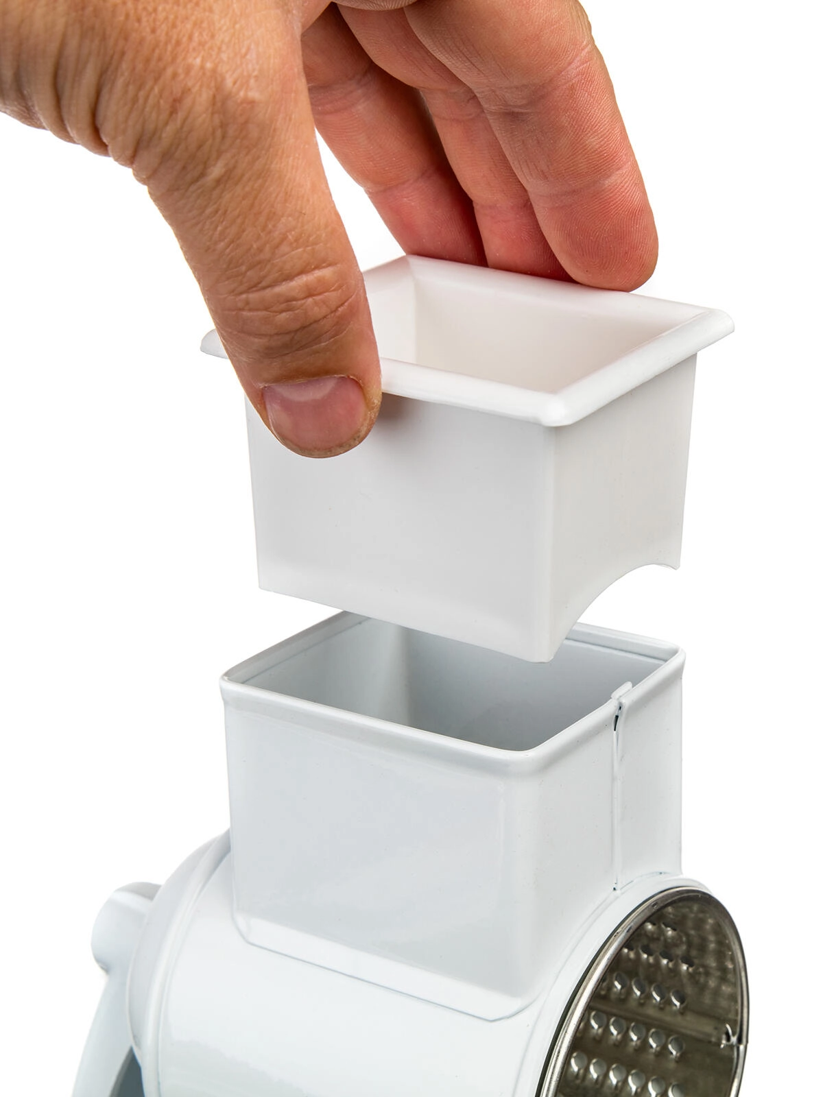 Kakovosten boben iz pocinkanega pločevina s premerom 7,5 cm zagotavlja enakomerno drobljenje in dolgo življenjsko dobo tudi pri pogosti uporabi.