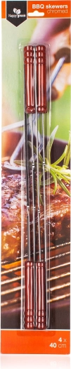 Uživajte v popolnem žaru s kakovostnimi nabodali dolžine 40 cm. Zahvaljujoč lesenemu ročaju je rokovanje udobno tudi pri višjih temperaturah, medtem ko kromiran premaz nudi odpornost proti obrabi in enostavno čiščenje.