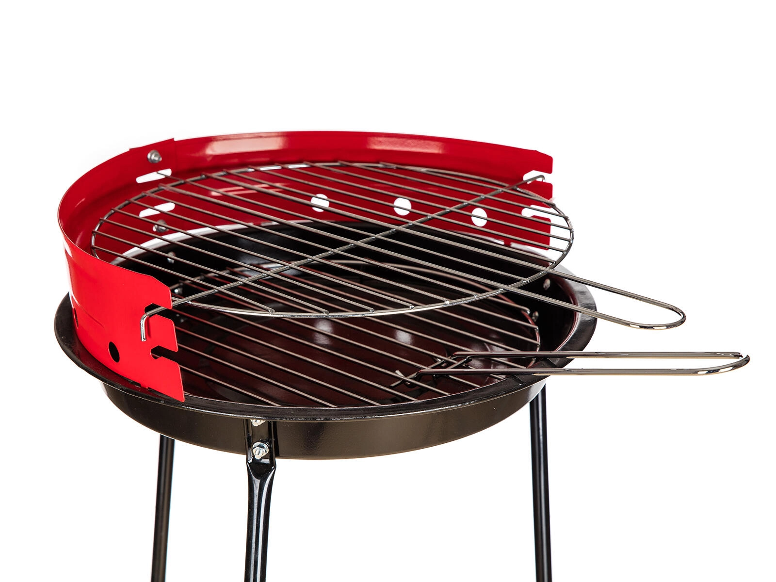 Dva kromirana rešetka in rdeča vetrna zaščita pripomoreta k enakomernemu pečenju ter varujeta pred sunki vetra.