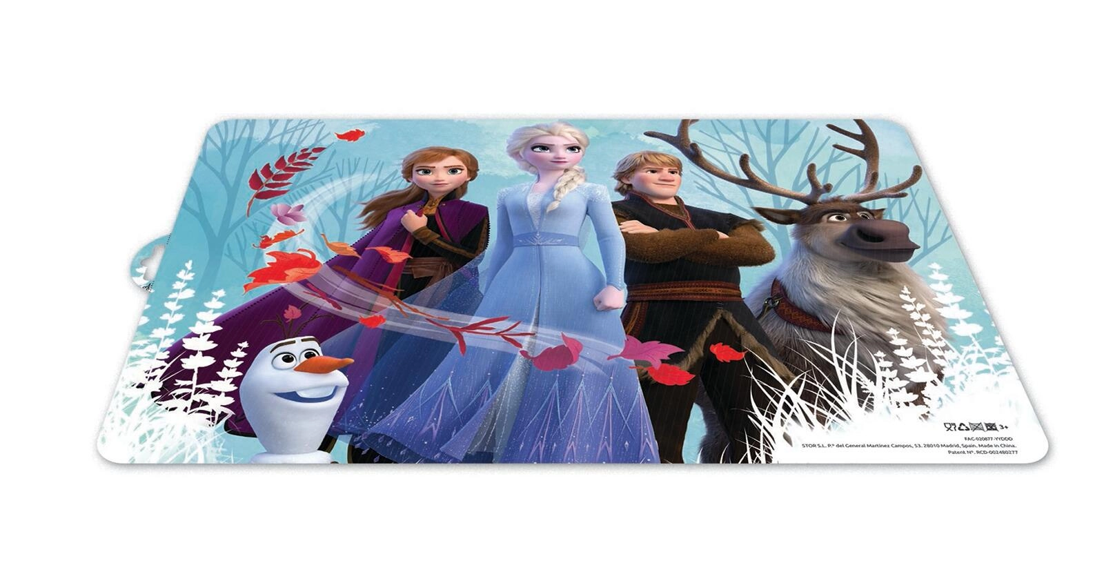 Razveselite otroško mizo s stilnim pogrinjkom z motivom FROZEN. Trpežen plast se enostavno čisti in ščiti mizo pred neredom. Univerzalna velikost 43 × 29 cm ter mešanica motivov bosta navdušili vsakega majhnega oboževalca Ledene kraljice.