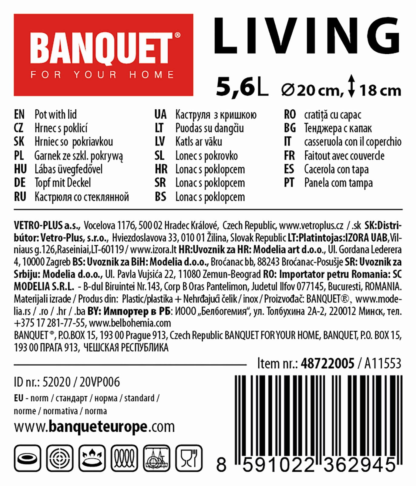 Praktičen in eleganten nerjavno jeklen lonec LIVING s prostornino 5,6 l in premerom 20 cm je idealen za vsakodnevno kuhanje. Ponuja odporno nerjavno izvedbo, stekleni pokrov z nerjavnim gumbom, sijočo površino z mat črtami ter univerzalno uporabo na vseh vrstah štedilnikov, tudi na indukciji.