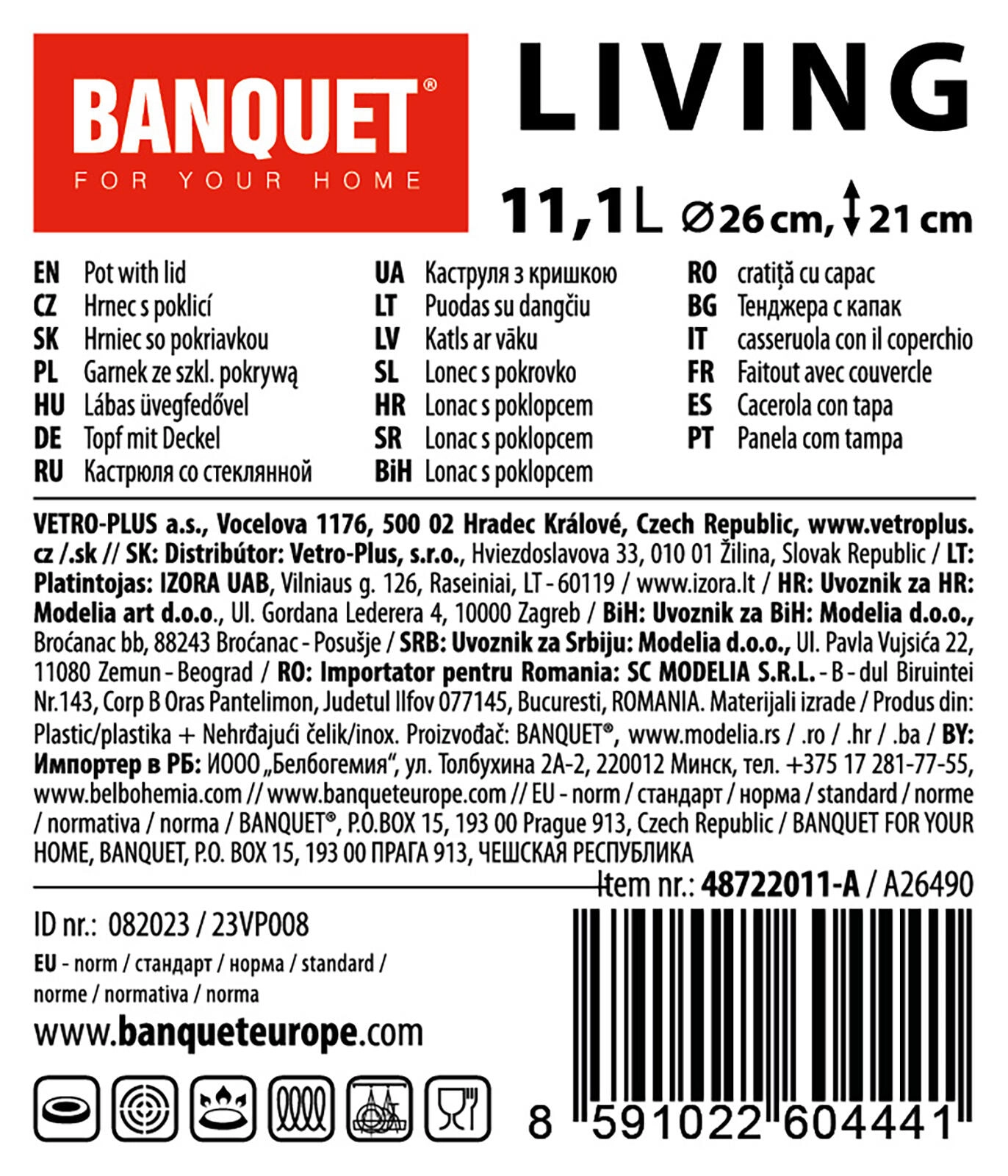 Odkrijte zanesljiv lonec LIVING s premerom 26 cm in velikodušno prostornino 11,1 l, ki zlahka obvlada vsakodnevno kuhanje in večje družinske porcije. Stekleni pokrov omogoča udoben nadzor nad pripravljenimi jedmi brez nepotrebnega uhajanja toplote, nerjaven gumb je trpežen in enostaven za prijem. Sijajna notranja in zunanja površina se zlahka čisti, tri nežne mat črte na zunanji strani pa loncu dodajo slog.