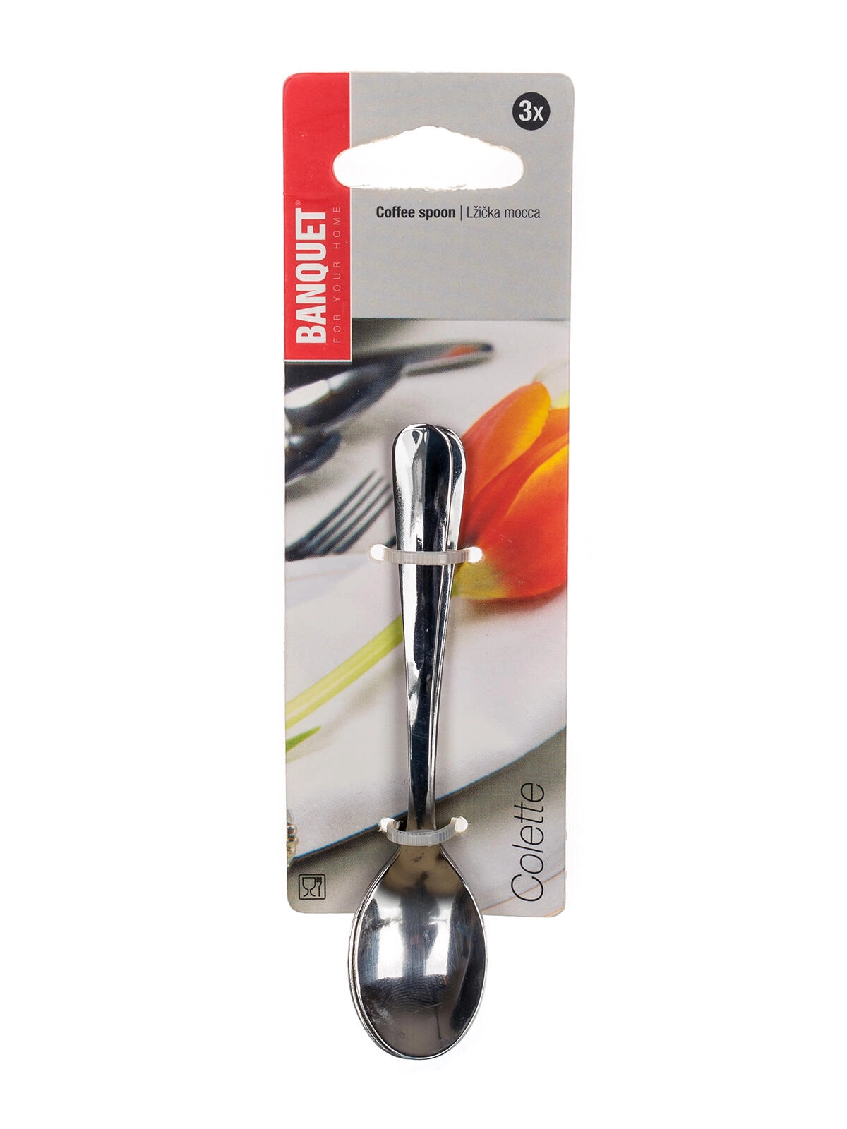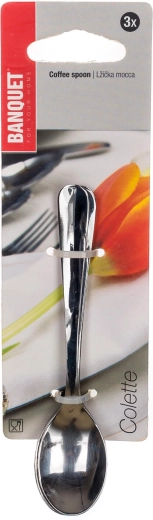 Elegantne moka žličke COLETTE iz kakovostnega nerjavnega jekla vašemu pogrinjku dodajo nežno eleganco in dolgo življenjsko dobo. Zaradi sijoče površine in skrbne ročne polirane obdelave se odlično podajo k kavnim skodelicam in sladicam. Praktično pakiranje 3 kosi razveseli doma in v kavarni.