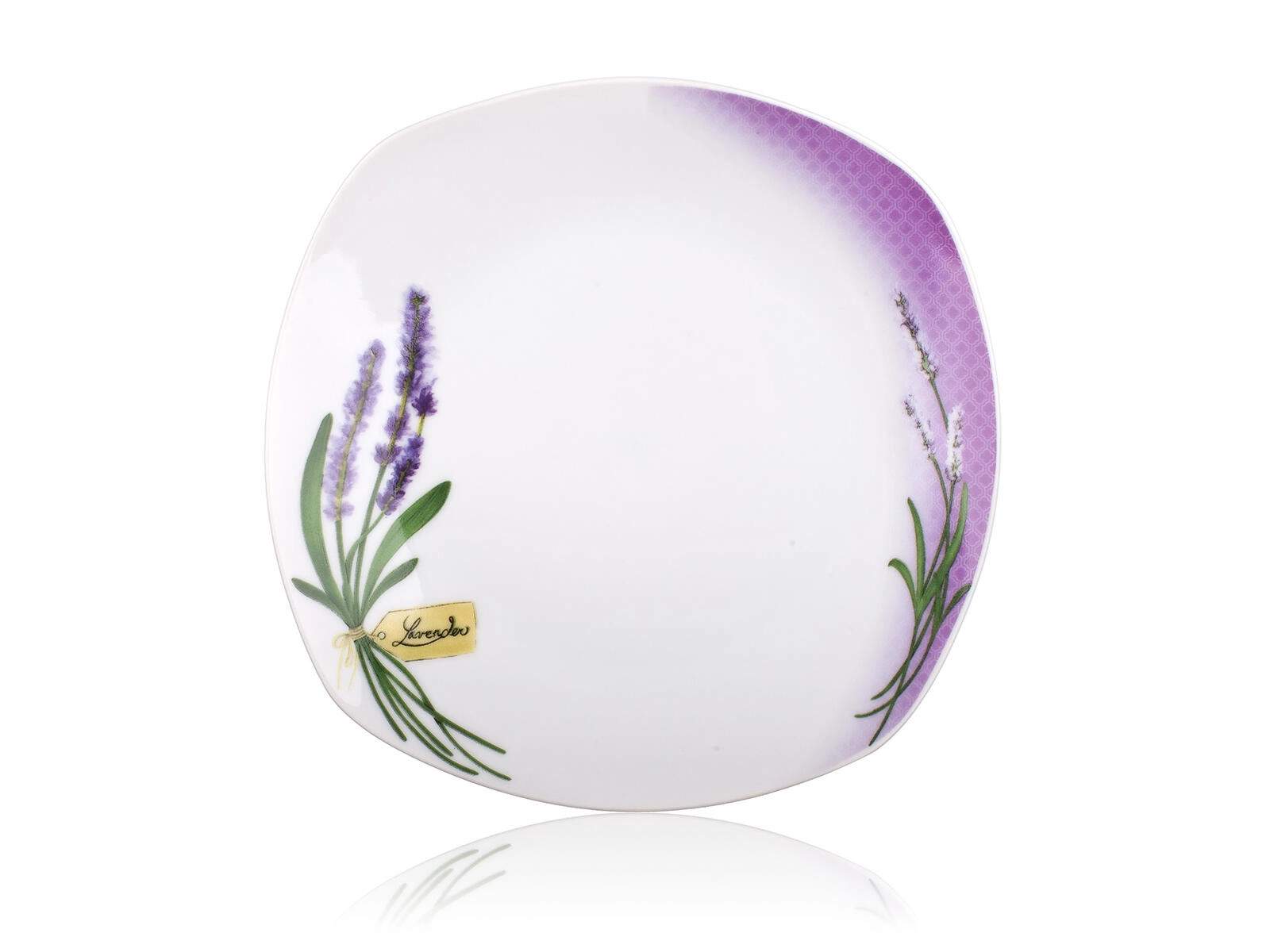 Čiste linije z zaobljenimi vogali in nežen motiv sivke dajejo mizi svež, eleganten videz ter se odlično podajo k različnim slogom pogrinjkov.