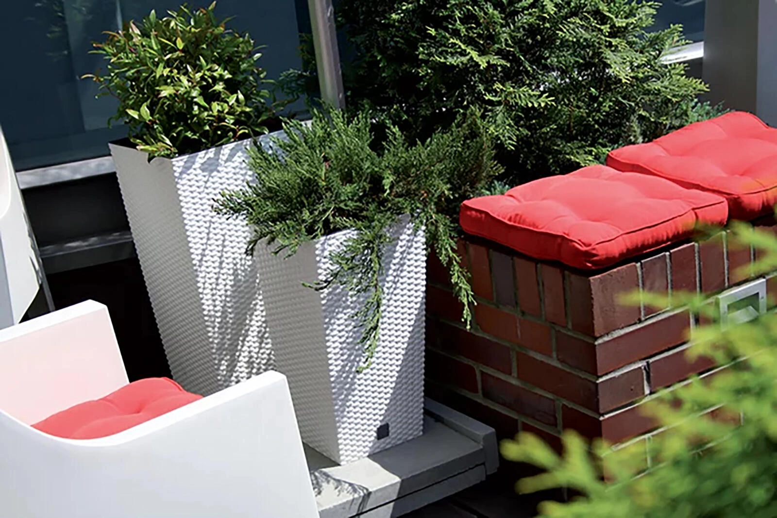 Lahek in trpežen material olajša rokovanje, hkrati pa lonec ohranja stabilnost. Dva ločena volumna (notranji vložek in zunanji ovoj) omogočata udobno sajenje in enostavno vzdrževanje.