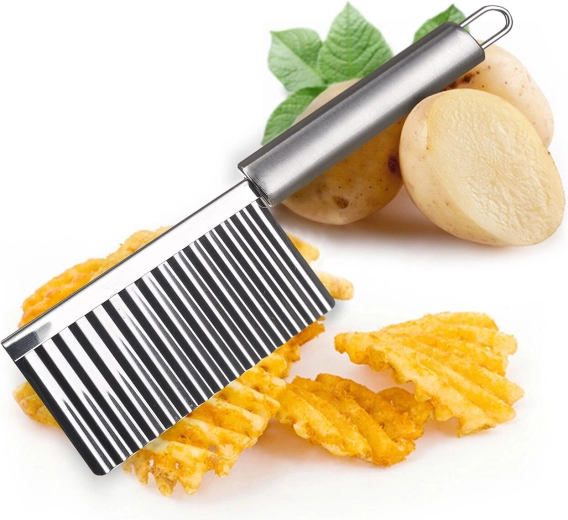 Nazobčen rob ustvarja enakomerne valove na krompirju, zelenjavi in sirih – idealno za pomfri in okrasne rezine.