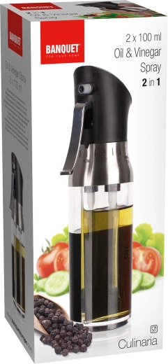 Odkrijte pametno rešitev za začinjanje – razpršilec za olje in kis CULINARIA z dvema ločenima komorama (2×100 ml) v eni steklenički. Omogoča hitro in higiensko pršenje ali doziranje olja in kisa posebej, in to z odlično kontrolo. Prozorno ohišje olajša spremljanje količine in razmerja tekočin, nerjaveč obroč pa doda eleganten videz.