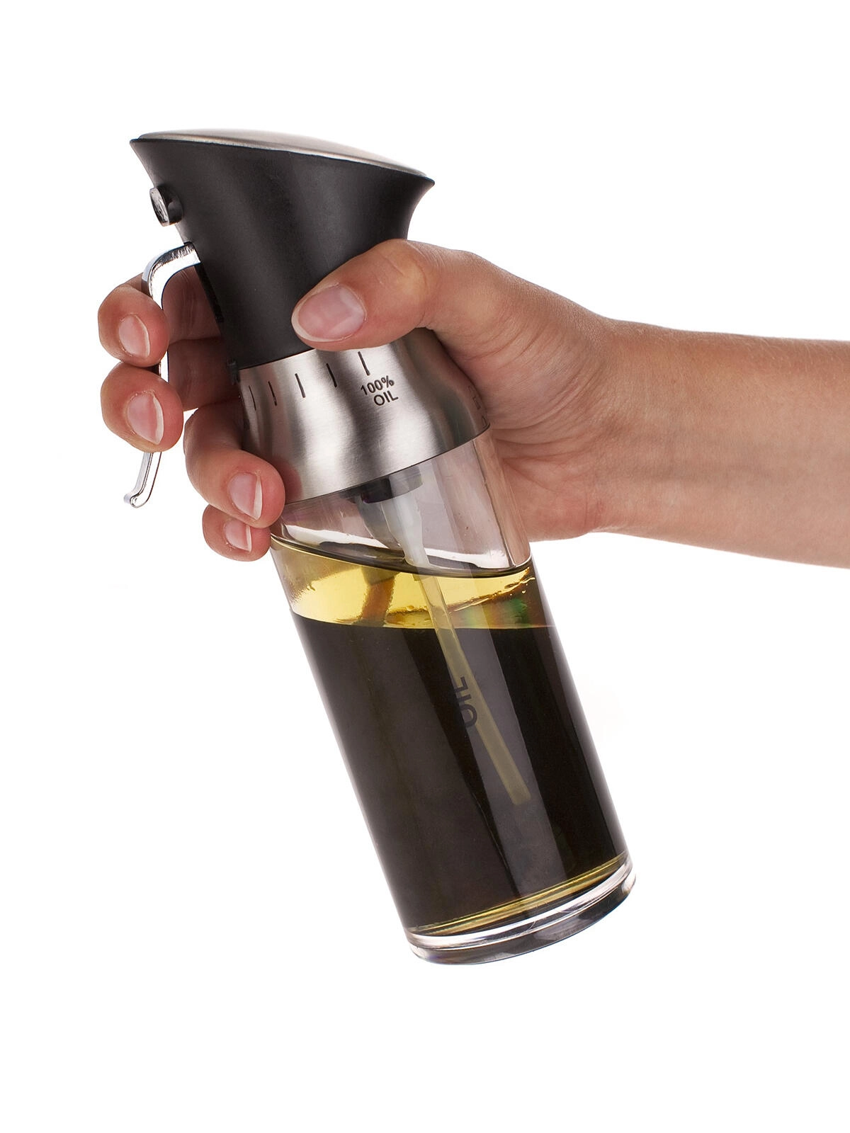 Razpršilec je idealen za solate, testenine, peko in žar – od nežnega začinjanja do enakomernega premazovanja. Intuitivni sprožilec zagotavlja natančen nanos brez polivanja in kapljanja. Zaradi kompaktnih mer (višina 20,4 cm, premer dna 5,5 cm) se udobno prilega v roko in na polico.