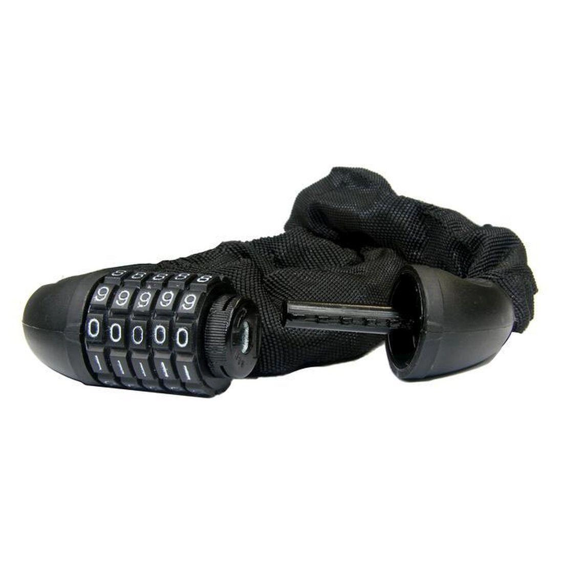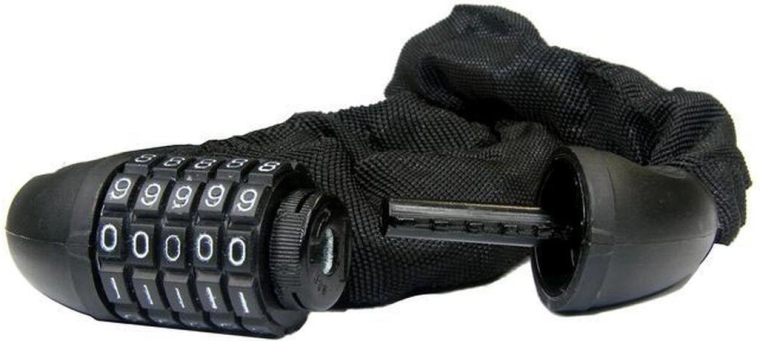Zanesljiva verižna kodna ključavnica z vzdržljivim tekstilnim ovitkom ščiti okvir in lak kolesa. Zahvaljujoč 5 številčnicam ponuja tisoče kombinacij in preprosto zamenljiv koda za največjo varnost in udobje pri vsakodnevni uporabi.
