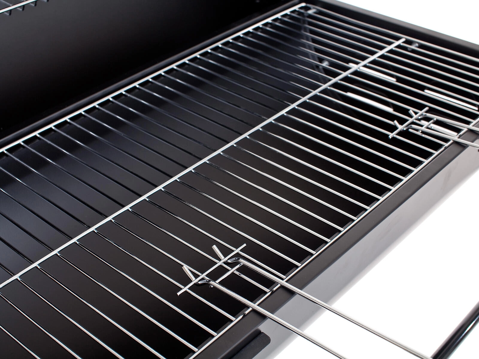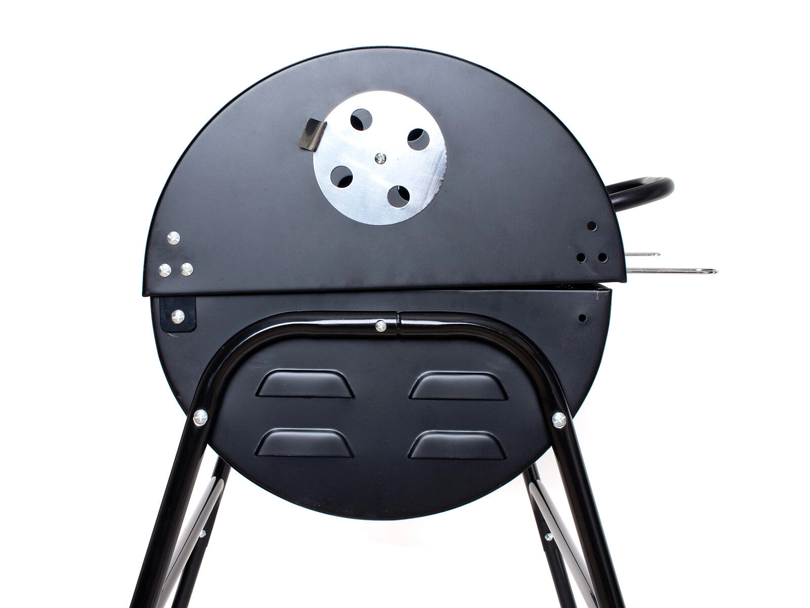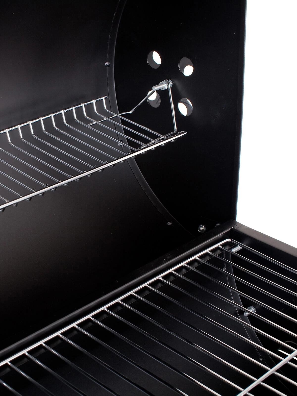 Rancher je zanesljiv žar iz ogljikovega jekla s pokrovom, ki združuje prostornost in vzdržljivost. Dve kromirani rešetki – glavna za pečenje in zgornja grelna – zagotavljata prilagodljivost pri pripravi mesa, zelenjave in pekovskih izdelkov. Zapirljiv pokrov z vgrajenim termometrom in stranskimi zračniki omogoča boljši nadzor nad temperaturo in pretokom zraka.