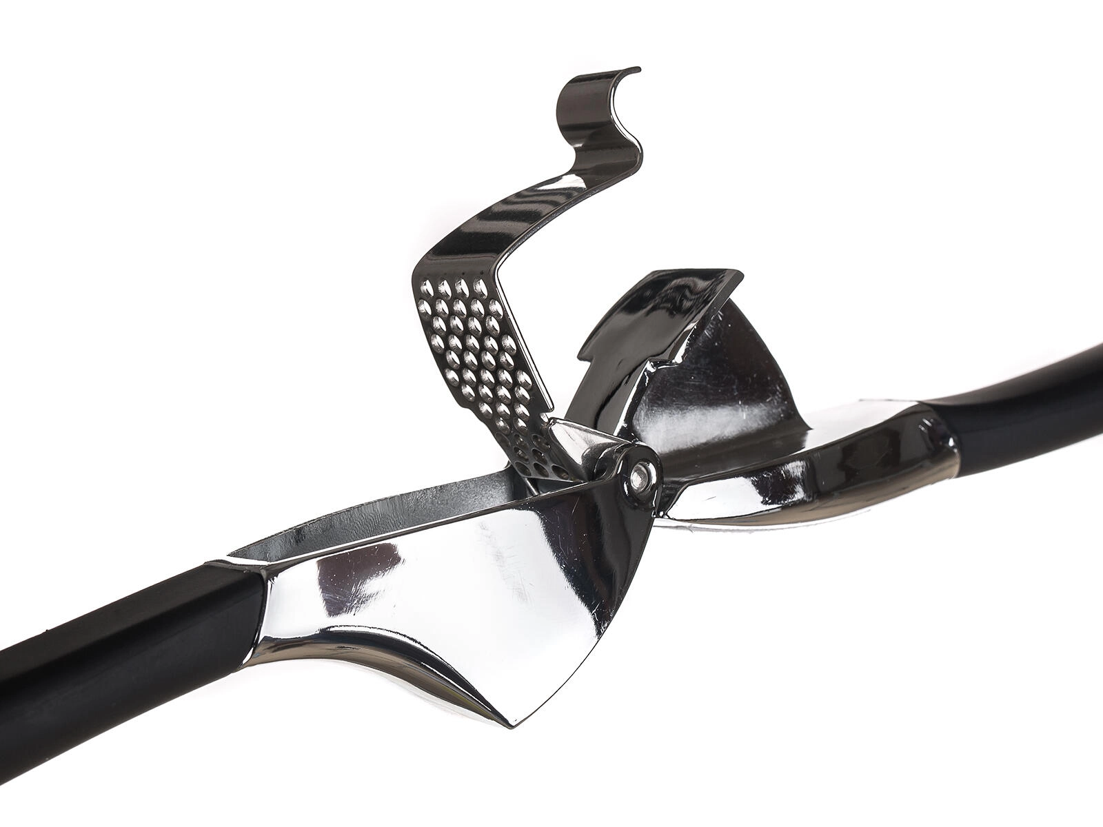 Cinkova zlitina s kromirano površino zagotavlja gladko delovanje in dolgo življenjsko dobo. Gosto preluknjana mrežica v hipu zmelje česen na drobno.