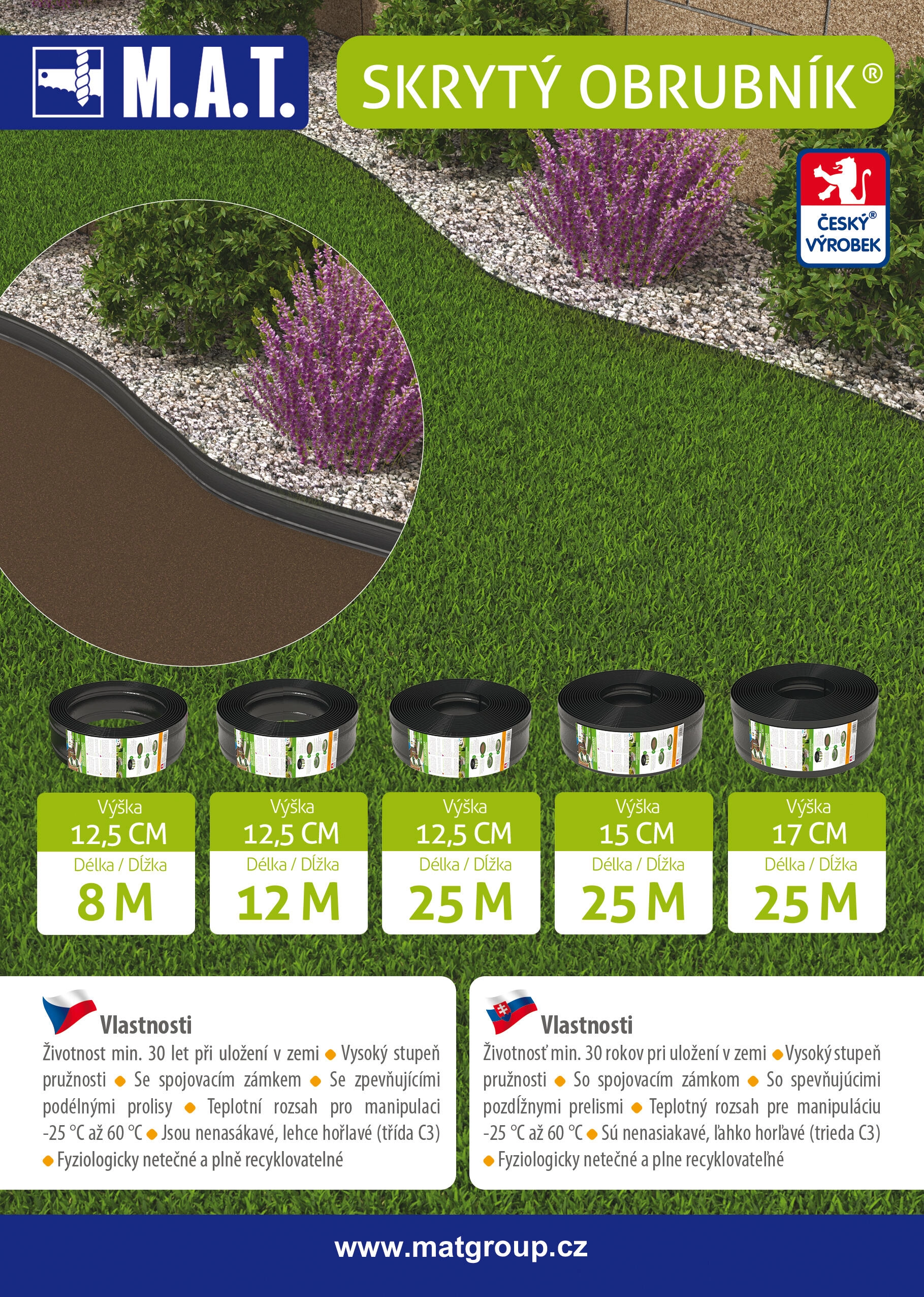 Prožen profil se zlahka prilagodi lokom in dolgim ravnim odsekom, zato dosežete gladko in neprekinjeno obrobo.