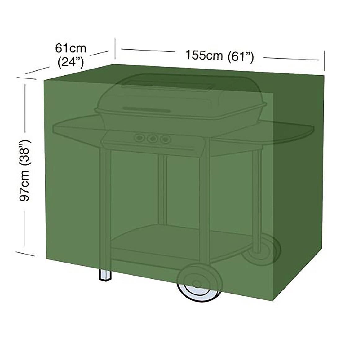 Mere 155 × 61 × 97 cm zagotavljajo zanesljivo prekrivanje običajnih žarov, zato vam ni treba skrbeti zaradi dežja, prahu ali vetra. Ponjava je lahka in enostavna za shranjevanje, zato jo po sezoni preprosto pospravite.