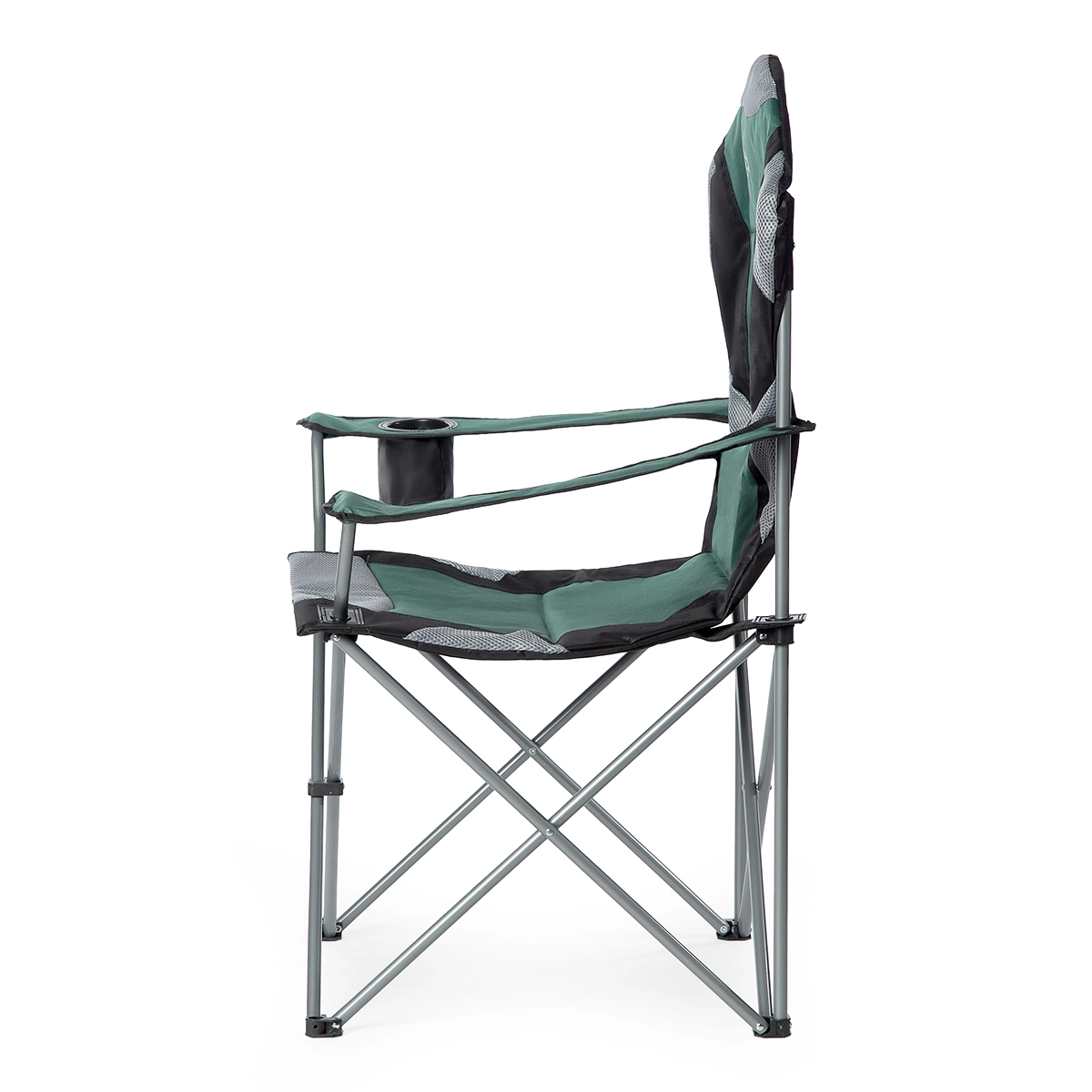Z enostavnim mehanizmom zlaganja in priloženo transportno vrečo z naramnim trakom stol hitro pospravite in vzamete kamor koli – od kampa in ribolova do festivala. Visoko naslonjalo in ergonomska oblika sedeža nudita oporo, ki jo boste cenili na vsakem izletu.