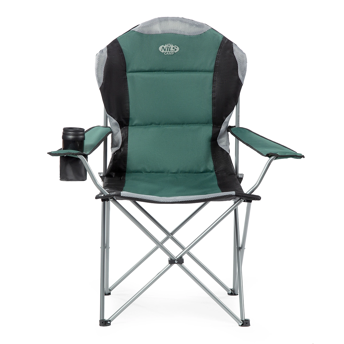 Zložljiv stol NILS Camp je zasnovan za maksimalno udobje in vzdržljivost v naravi. Robustni jekleni profili s premerom 16 mm zagotavljajo stabilnost, medtem ko dvoslojni, oblazinjen material 600D Oxford z zračnimi paneli skrbi za udobje tudi pri daljšem sedenju. Ne manjkajo proti-zdrsne nogice in vgrajeno držalo za pijačo, da imate osvežitev vedno pri roki.